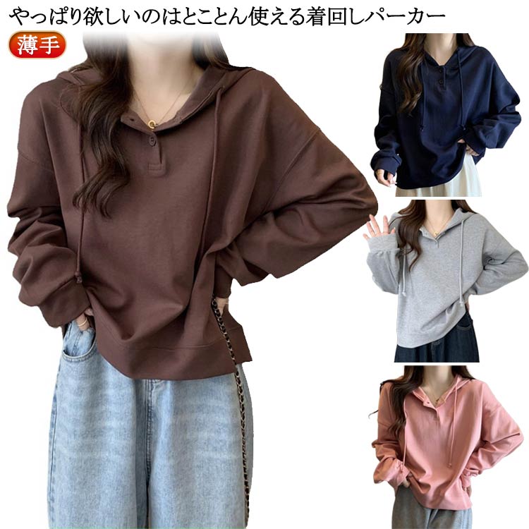 体型カバー 韓国 春 秋 冬 40代 トップス パーカー 早い者勝ち グレー ブラウン ピンク ブルー M L XL 2XL