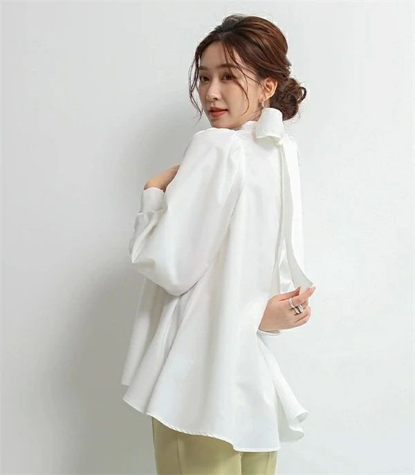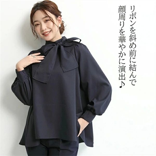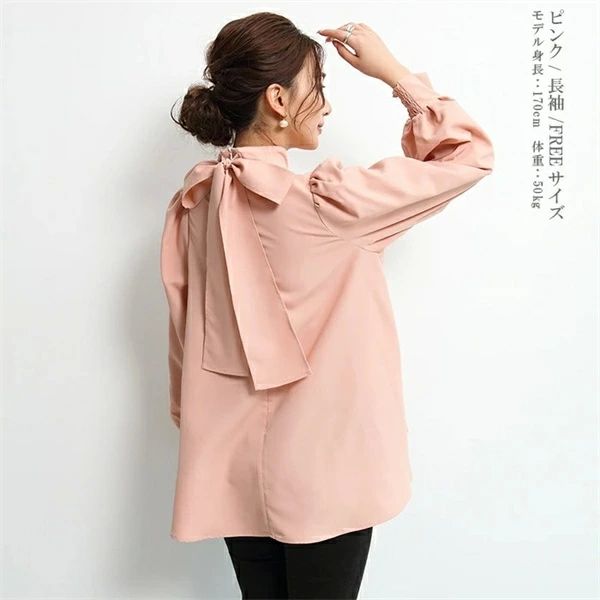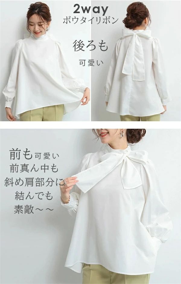 シアースリーブ ドッキングシャツ ボウタイシャツブラウス