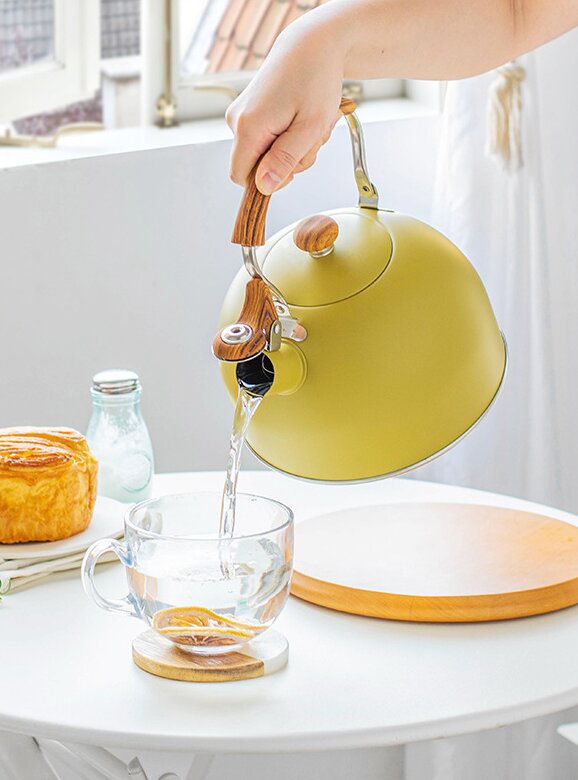 大容量 ティーポット 木目ハンドル ケ オフホワイト イエロー