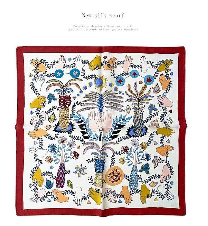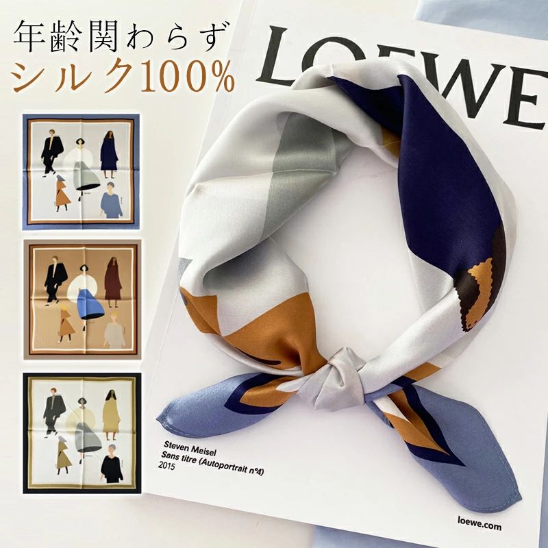 大人可 絹 天然素材 ネックスカーフ 53cm×53cm プリント 小さい 正方形 シルク100% ネッカチーフ レディース オフィススカーフ