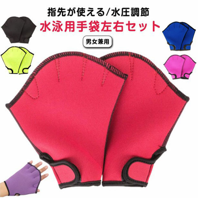プール練習用具 グローブ 水かき 男女 レッド ブルー ローズレッド パープル イエロー ブラック S(左右セット) M(左右セット) L(左右セット)