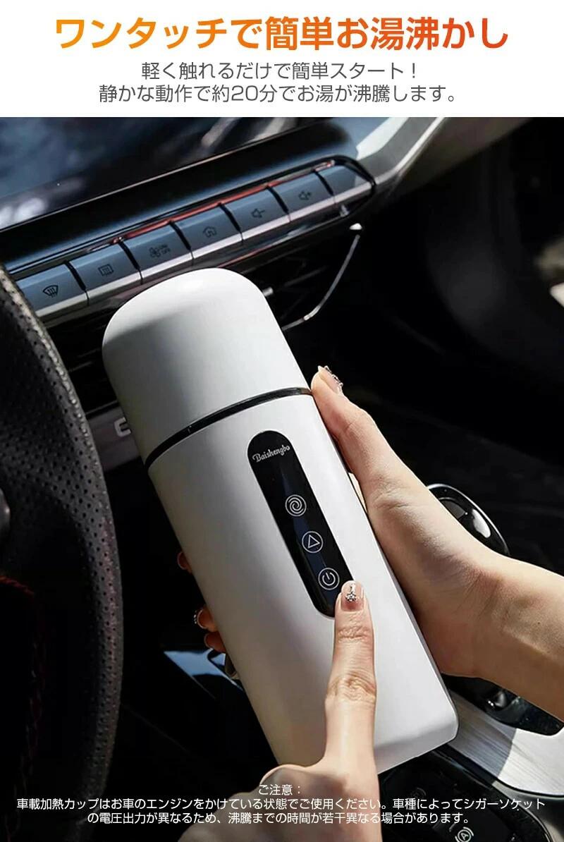 車載電熱ポット 車用 電気ケトル DC ホワイト ブラック