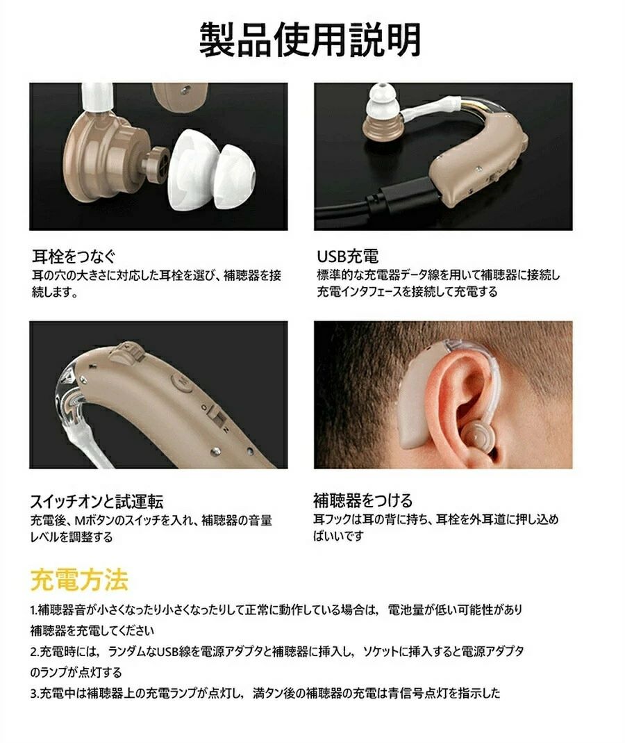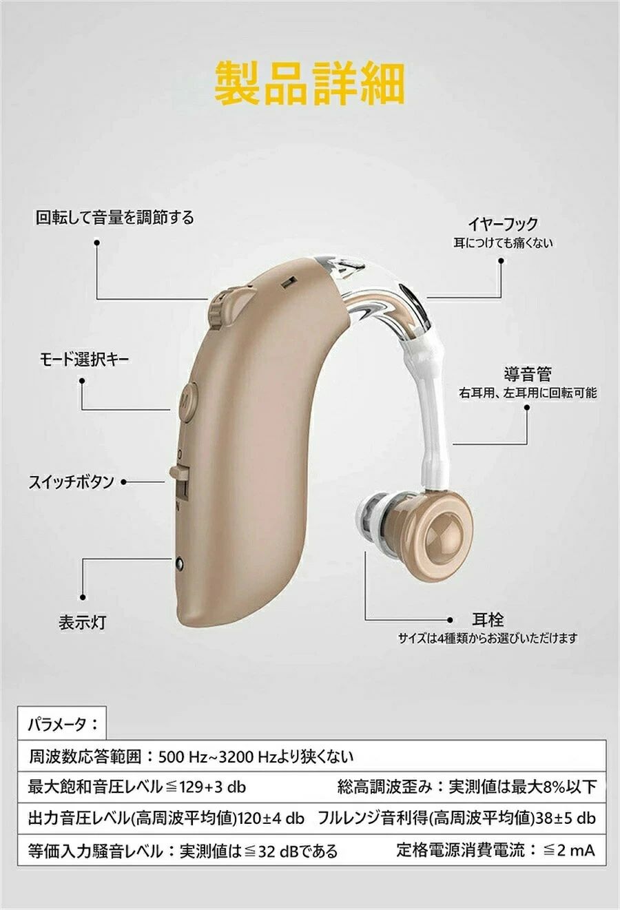 補聴器 耳掛け式 デジタル補聴器 超軽 肌色 ブルー ブラック