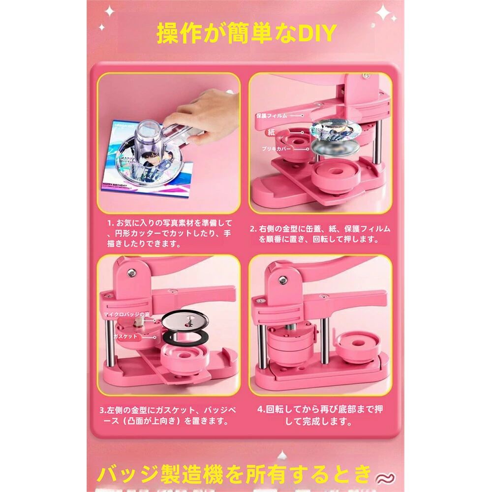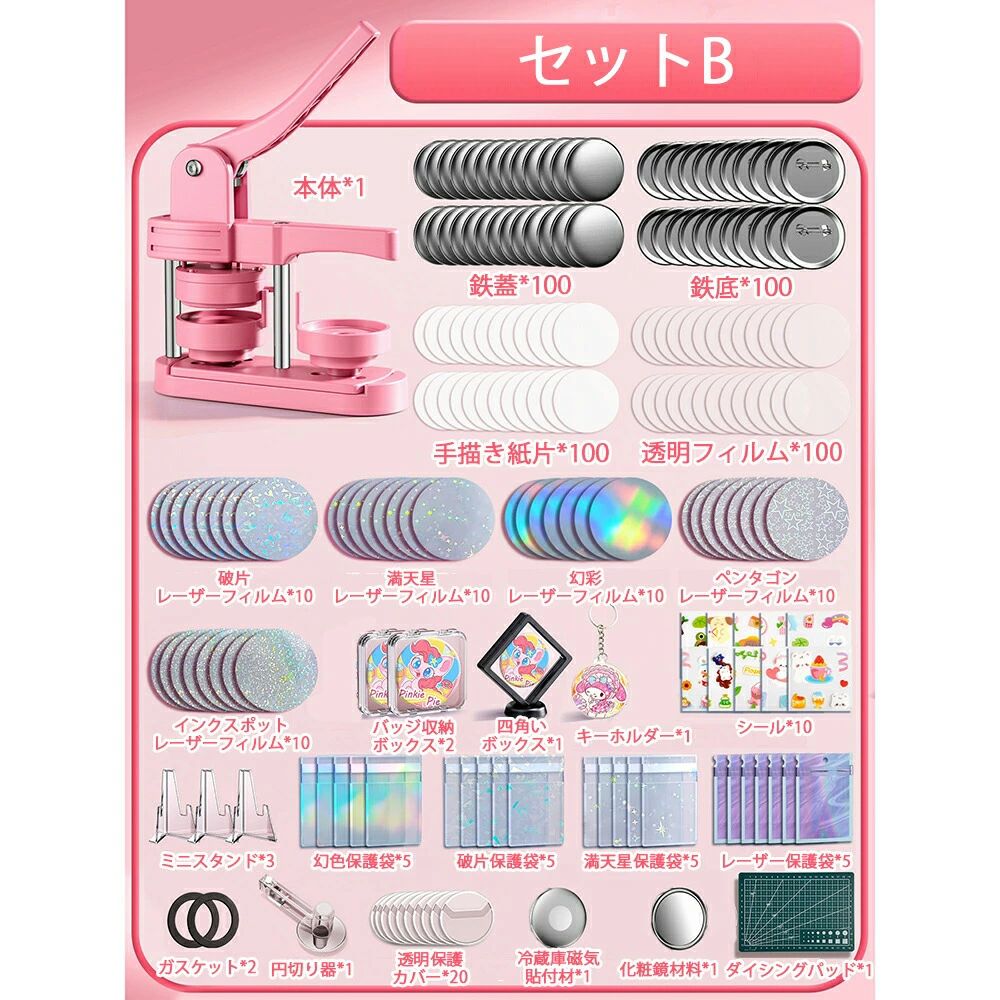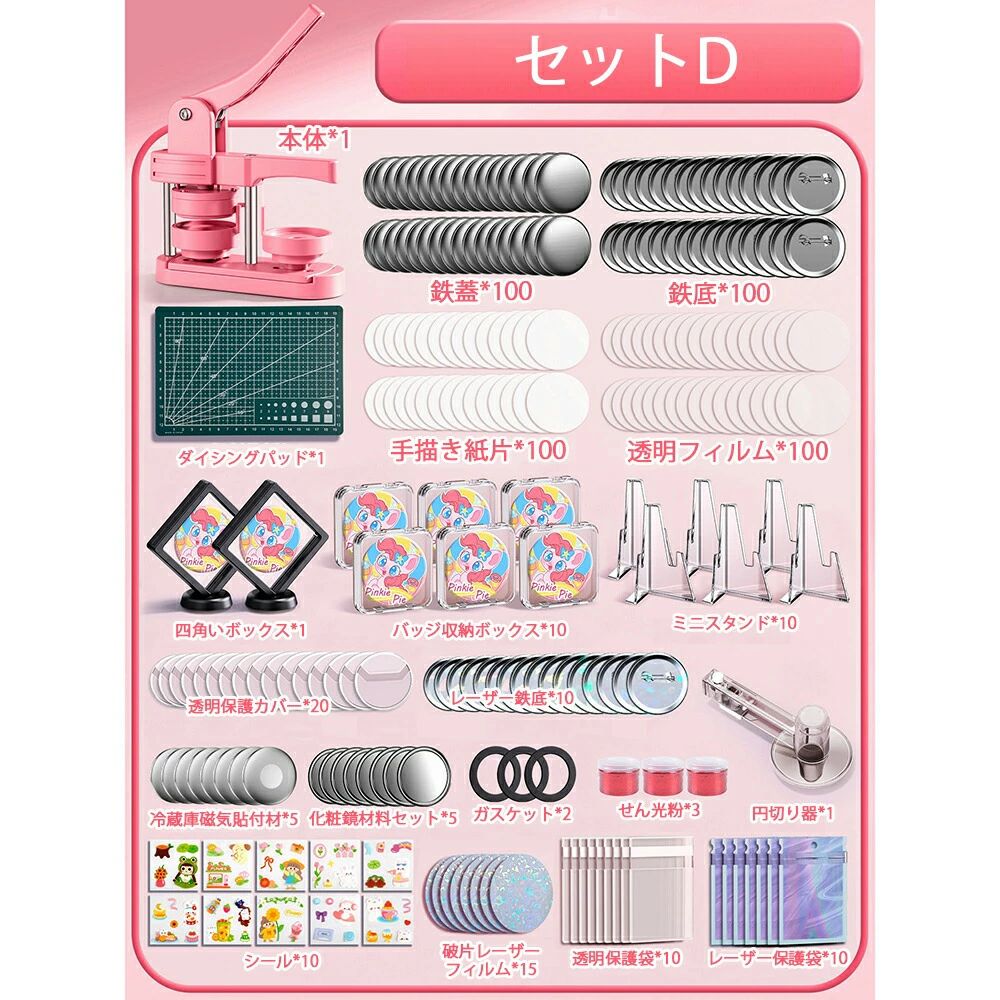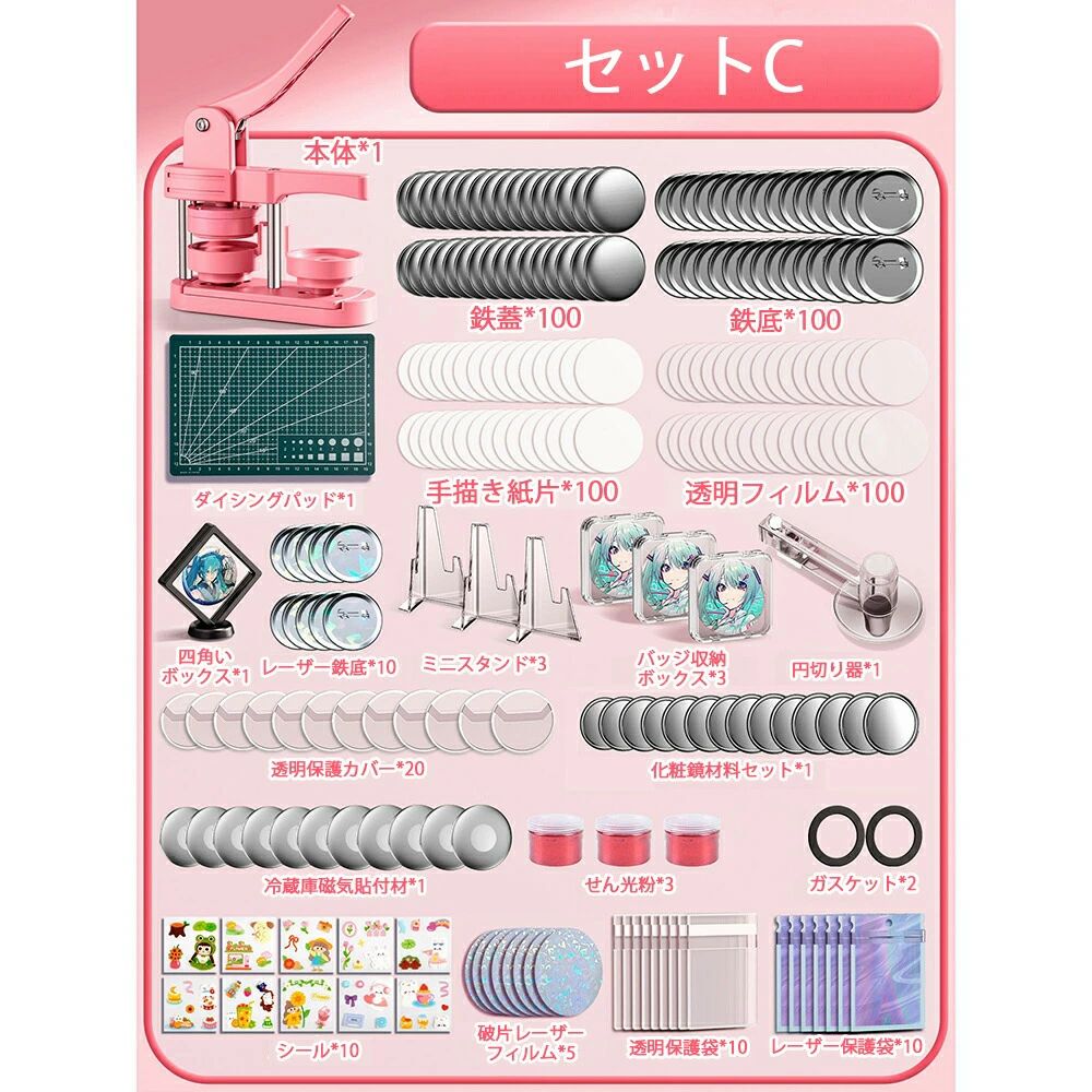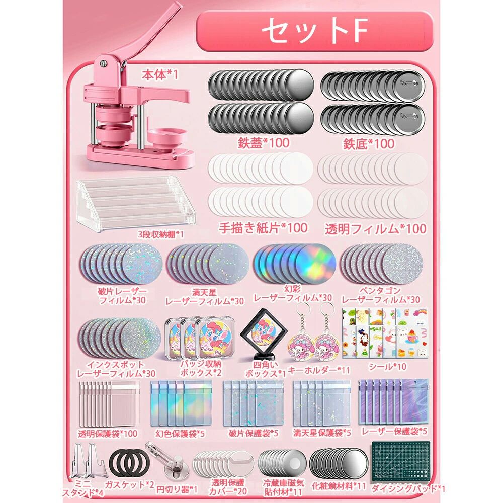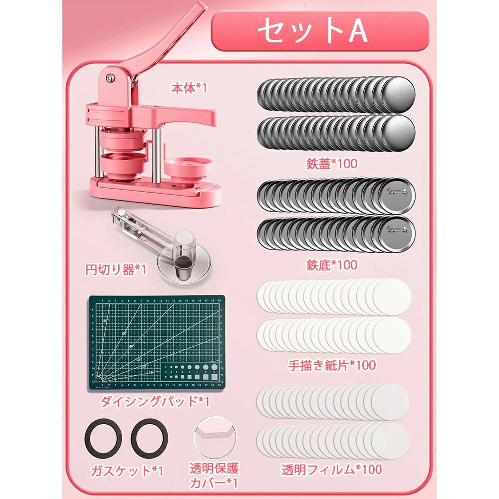 缶バッジマシーン 58mm金型 缶バッ ホビー 人気 ピンク グリーン セットA セットB セットC セットD セットE セットF セットG セットH 本体だけ*1