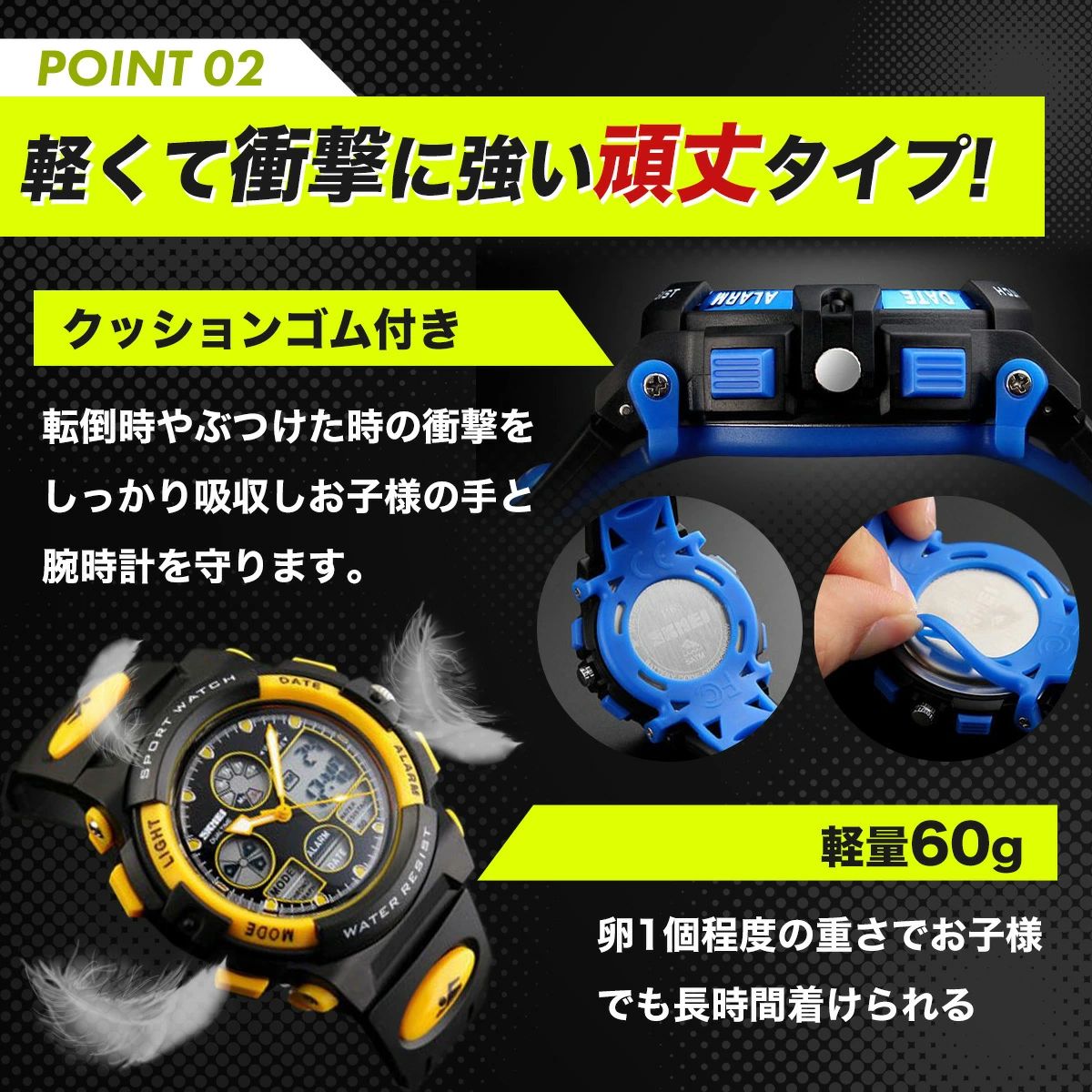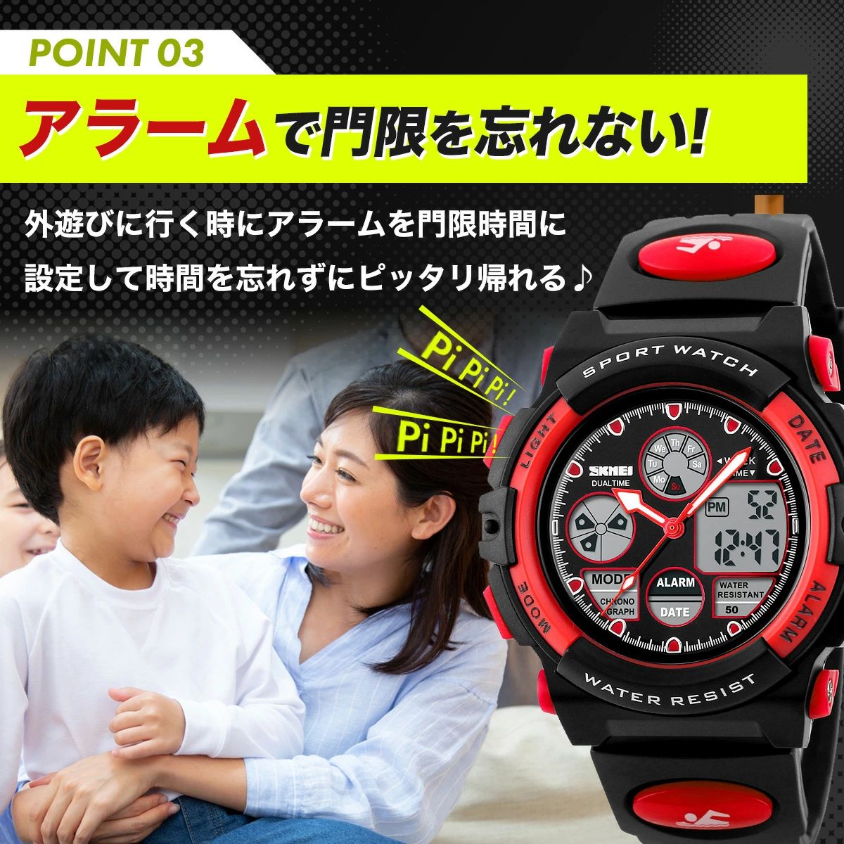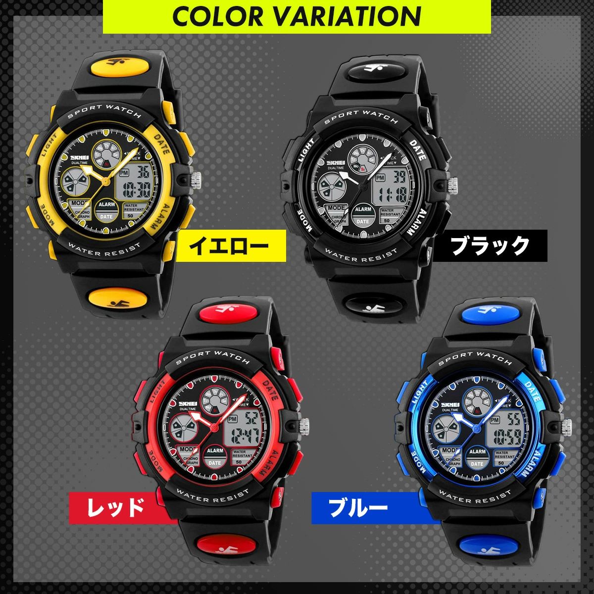 腕時計 子供 男 防水 男子 男の子 イエロー レッド ブルー ブラック