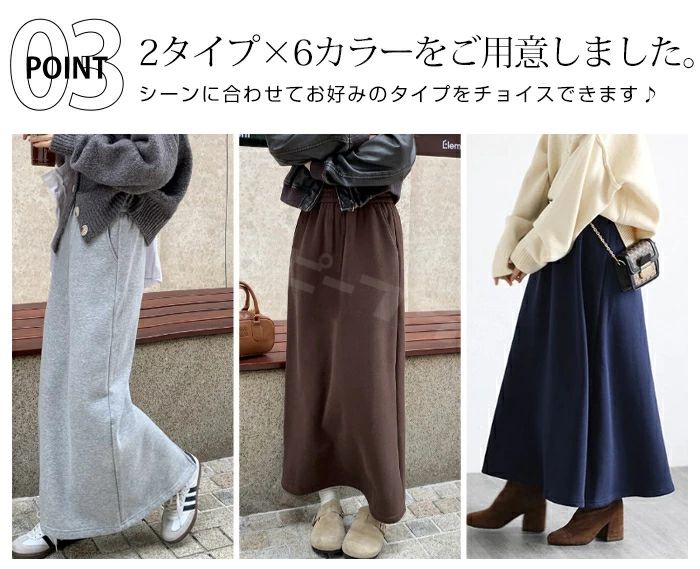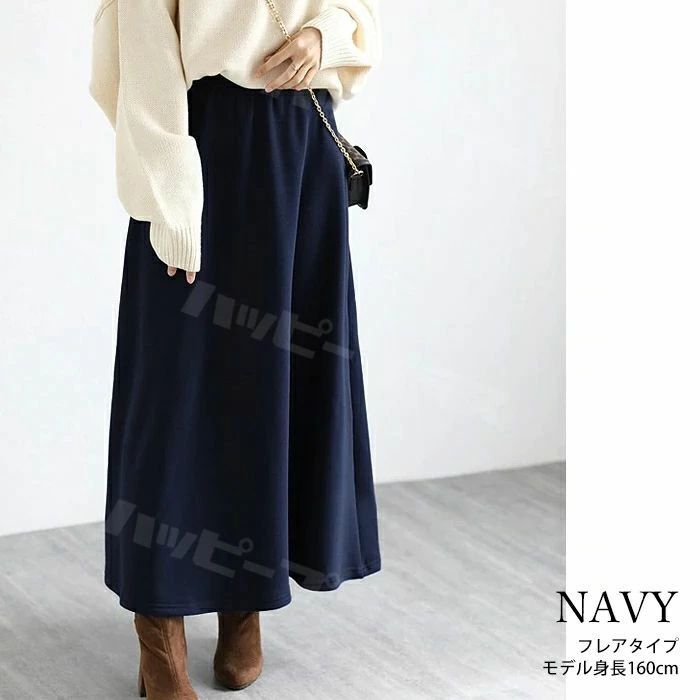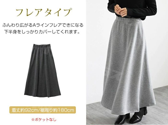 裏起毛 マキシスカート ロングスカート ボトムス スカート 人気 ブラック ネイビー グレー ブラウン デニムブラック デニムブルー フレアタイプ タイトタイプ