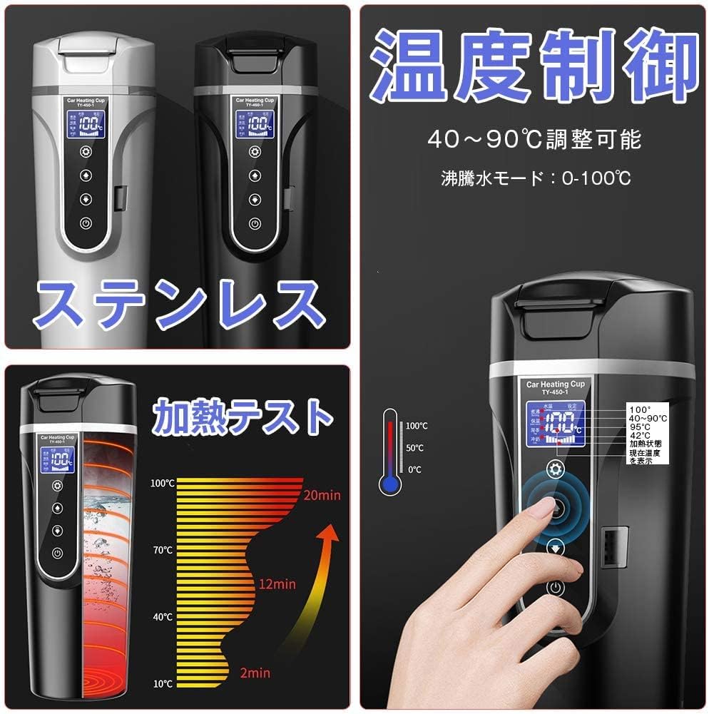 車載電気ケトル 40℃~100℃ 500ml大容量 カー用 トラック用DC12V 24V 加熱 保温 湯ボルト ポータブルケトル ミニ電気ケトル 湯沸し器