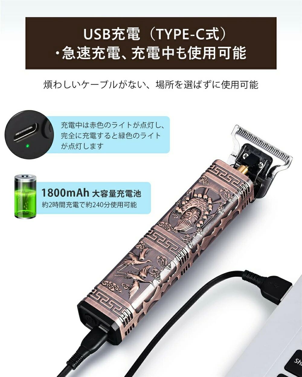 電動 バリカン メンズ 散髪 0.1m