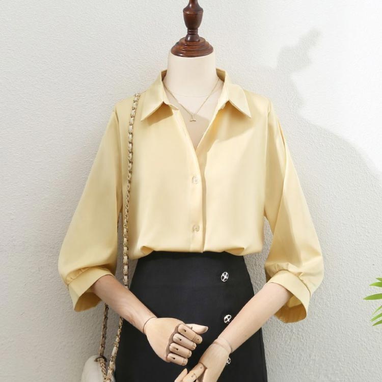 シャツ レディース ブラウス 7分袖 トップス シャツ ブラウス 続々登場 ホワイト イエロー ベージュ ブルー S M L XL 2XL 3XL