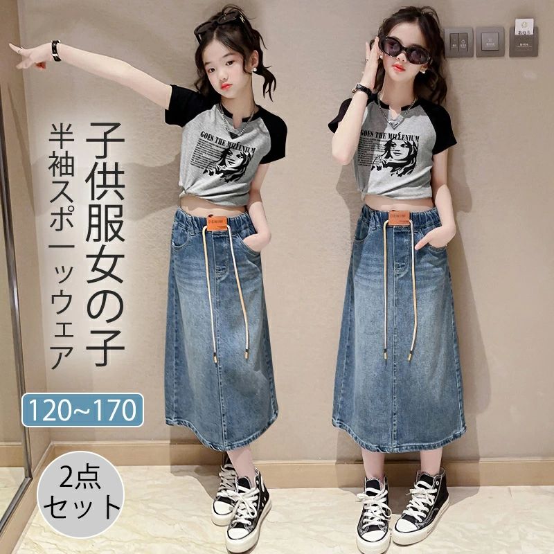 新品 韓国子供服 ガールズ セットアッ キッズ ベビー マタニティ 続々登場 Tシャツ スカート Tシャツ+スカート 120cm 130cm 140cm 150cm 160cm 170cm