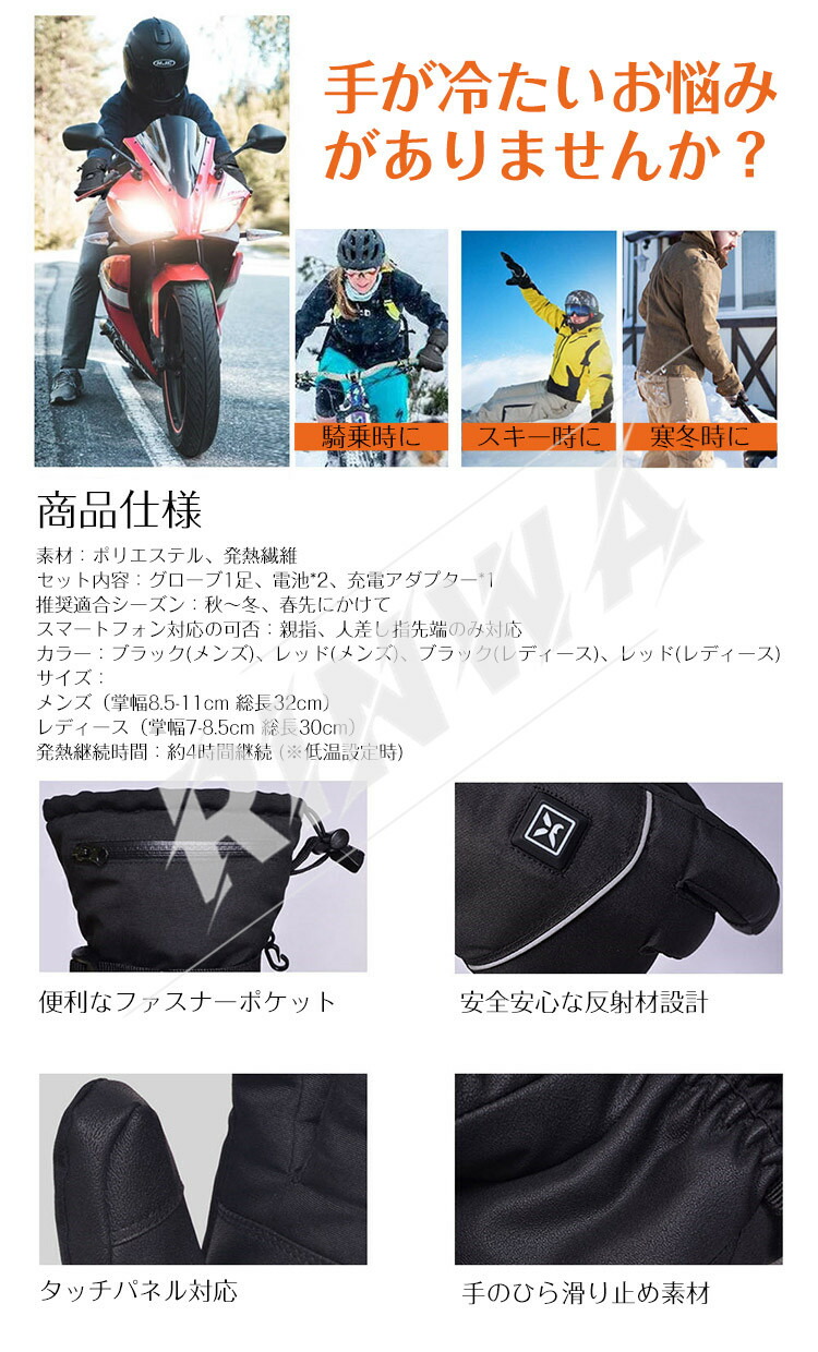 ヒーターグローブ 電熱グローブ 充電式 スポーツ アウトドア 早い者勝ち ブラック(メンズ) ブラック(レディース) メンズ(掌幅8.5-11cm総長32cm) レディース(掌幅7-8.5cm総長30cm)