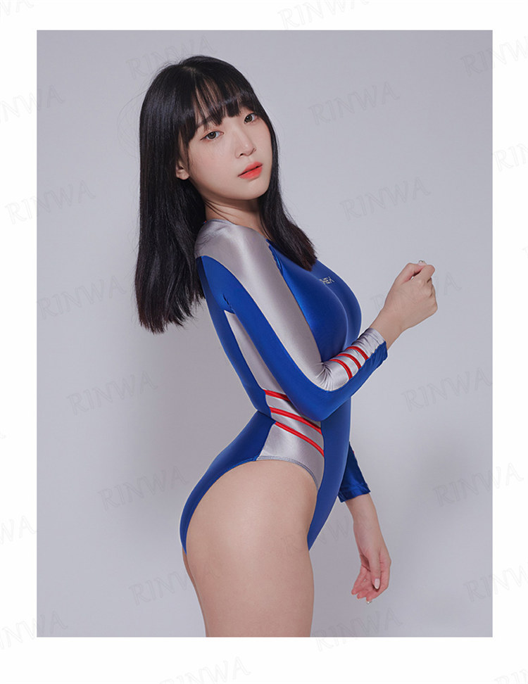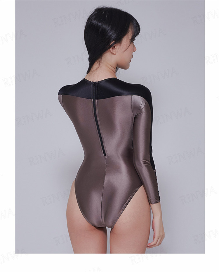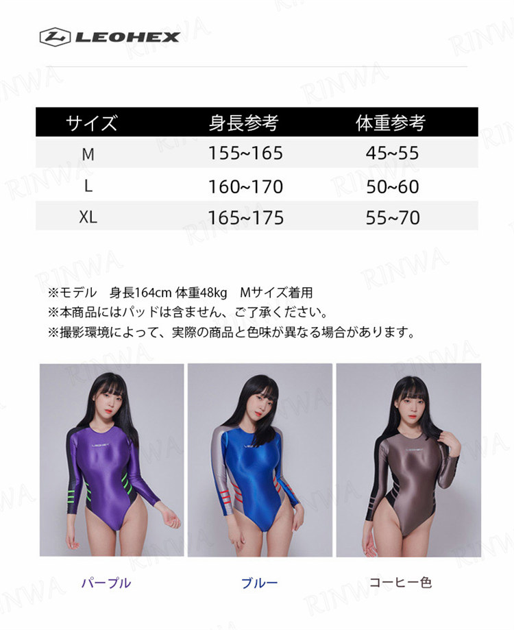 競泳 水着 長袖ラッシュガード 光沢感 コスプレ 変装 仮装 コスチューム一式 続々登場 M L XL 2XL パープル ブルー コーヒー色