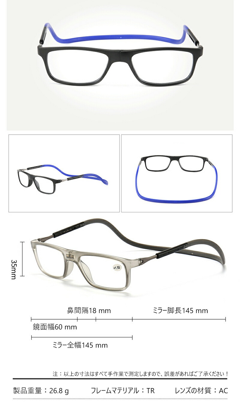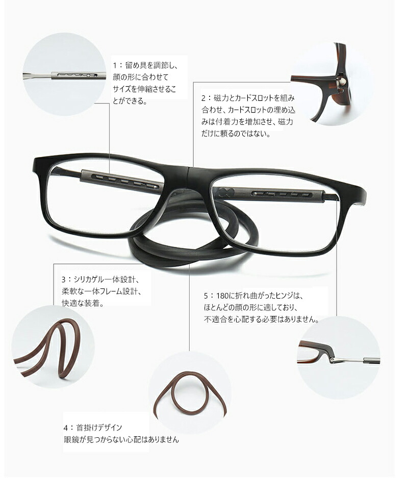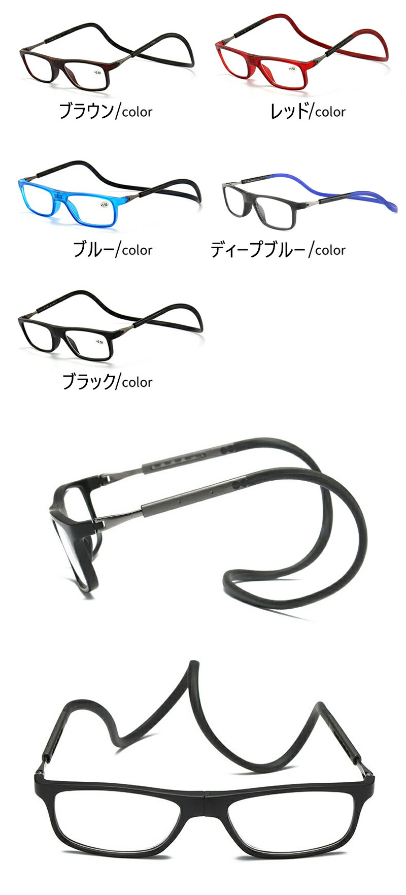 紛失防止老眼鏡 強力マグ スマート 首 眼鏡 サングラス 老眼鏡 通販 ディープブルー ブルー ブラウン ブラック レッド +1.00 +1.50 +2.00 +2.50 +3.00 +3.50 +4.00