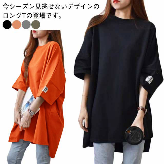 Tシャツ 半袖 ロングTシャツ ゆった レディースファッション 通販 ブラック オレンジ グレー グリーン