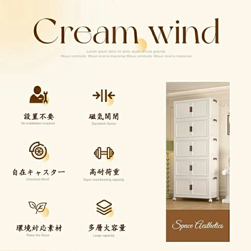 キャスター付き収納キャビネット 扉付き 45cm 50cm 55cm 2段式 3段式 4段式 5段式