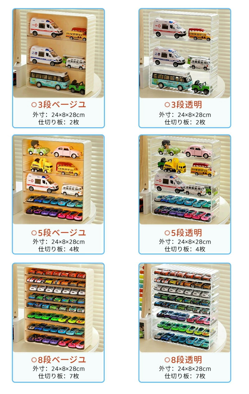ミニカー 収納 ミニカーケース ミニカ ホビー 特集 透明 ベージュ 三段 五段 八段