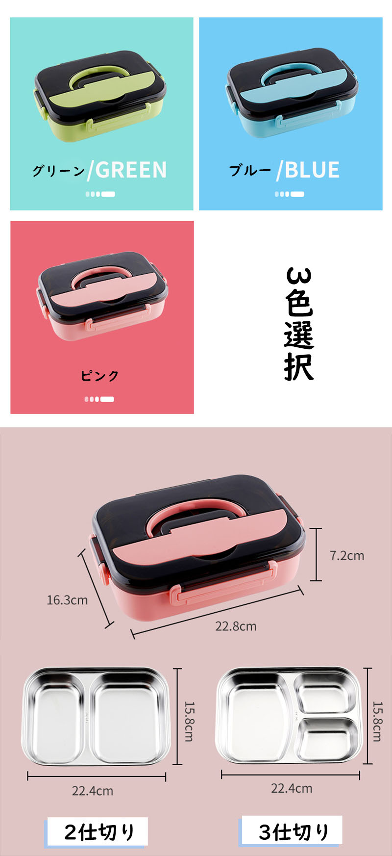 ステンレス 保温弁当箱 冷蔵 抗菌 1 キッチン用品 食器 調理器具 特集 2 仕切り 3 仕切り ピンク グリーン ブルー