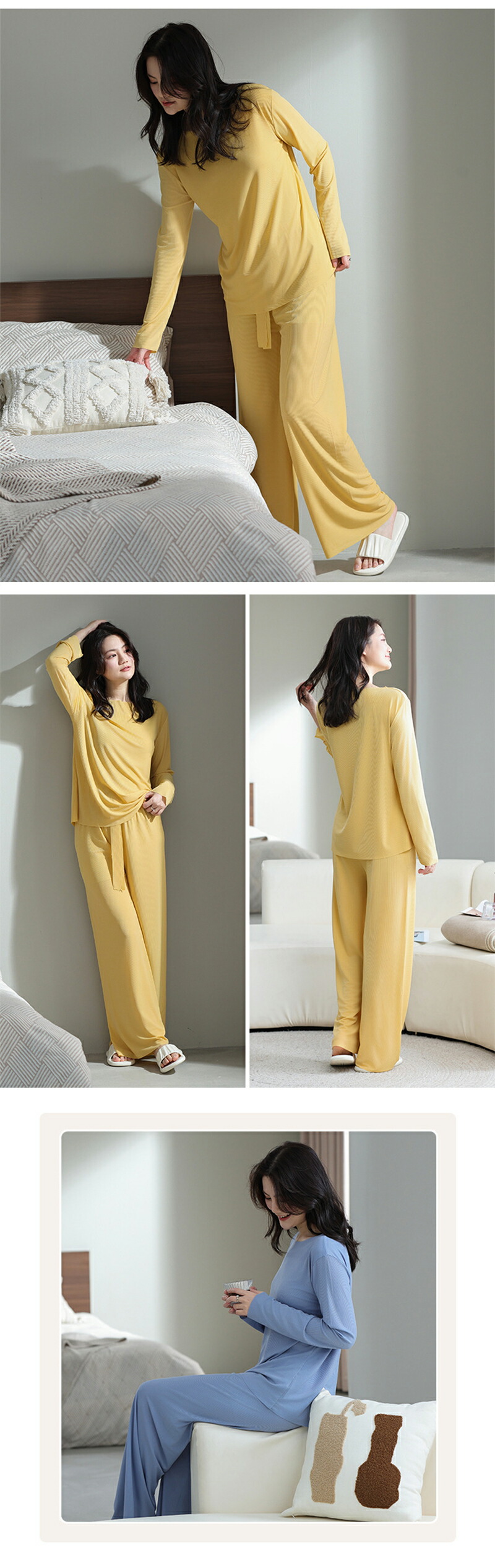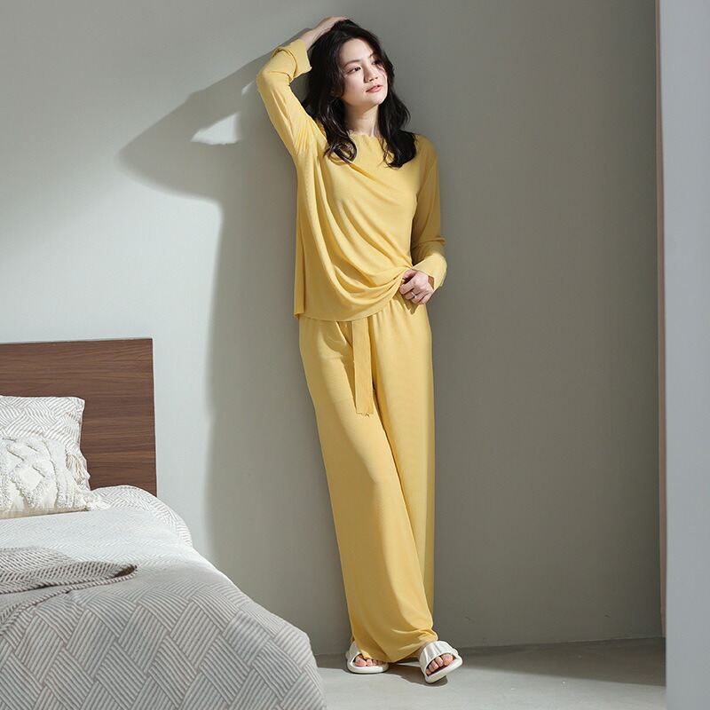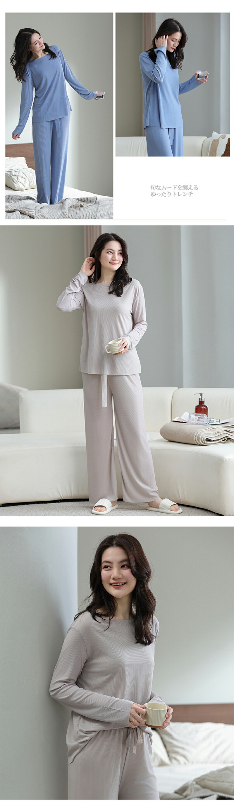 さらてろ ルームウェア 楽ちん リブ トップス Tシャツ カットソー 特集 グリーン ブラック グレー イエロー ピンク ブルー