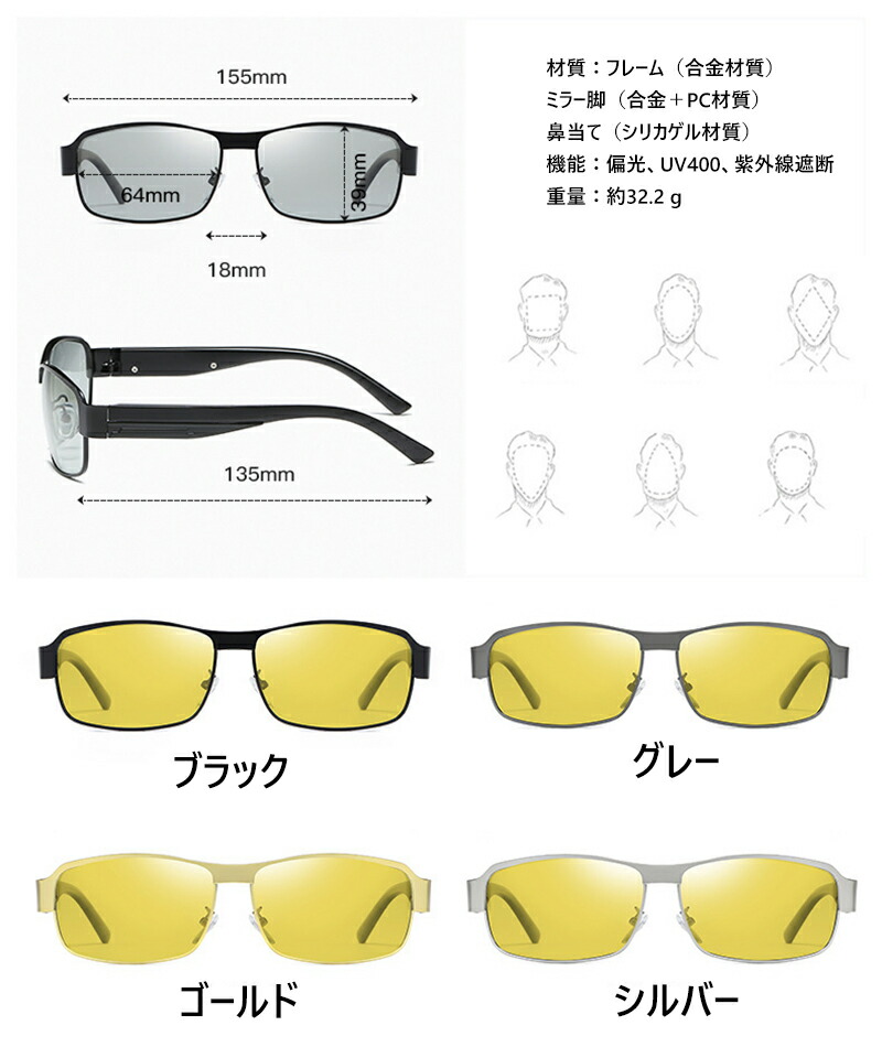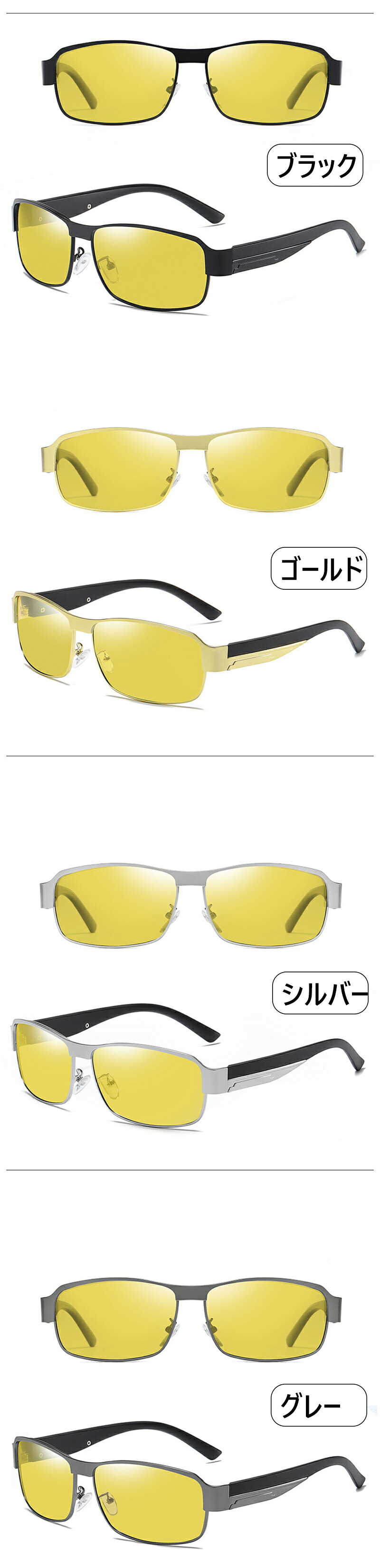 メンズ サングラス レディース 偏光 UVカット ケース付き 色別で 調光 ミラーレンズ イエローレンズ 昼夜兼用 夜用あり 運転用 釣り 黄色 男女兼用 カラーサングラス アウトドア