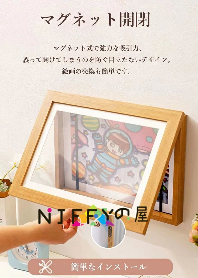 【品質向上、子供にもっと適しています】フレーム素材:高品質の木材、フロントパネルは高透明アクリル板で、傷に強く耐久性に優れています。(ご購入時には保護フィルムが貼られていますので、ご使用前に剥がしてください。)背面の留め具は回転爪式で簡単に交換できます。滑らかなデザインで手を傷つけず、お子様やご年配の方にも適しています。