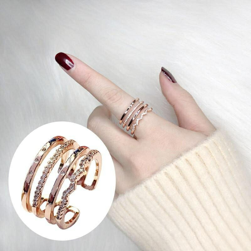 指輪 リング 四連風 ラインストーン レディースジュエリー アクセサリー 指輪 リング 豊富 ローズゴールド シルバー
