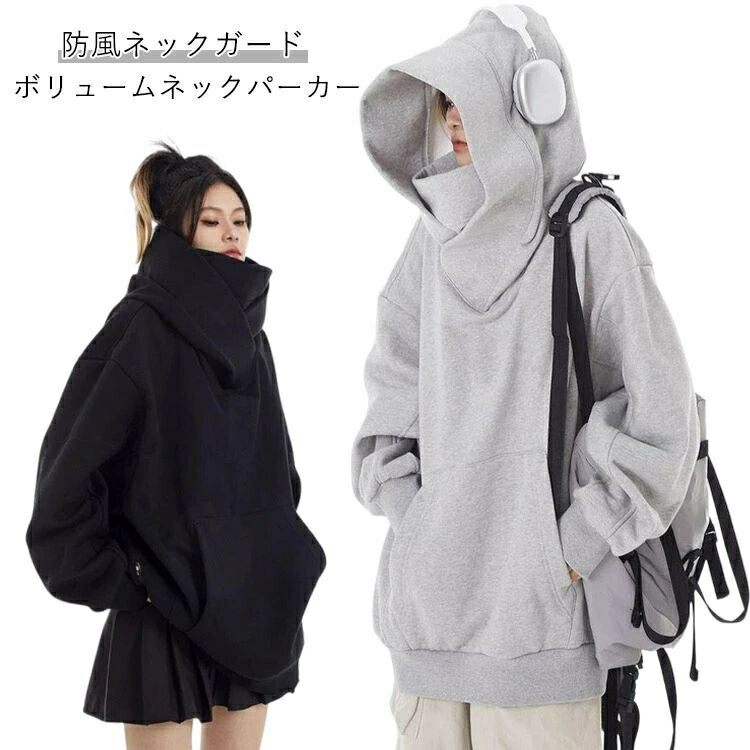 ボリュームネックパーカー パーカー プ レディースファッション 新作 グレー裏起毛 ブラック裏起毛 ブラック薄手 グレー薄手 S M L XL 2XL 3XL