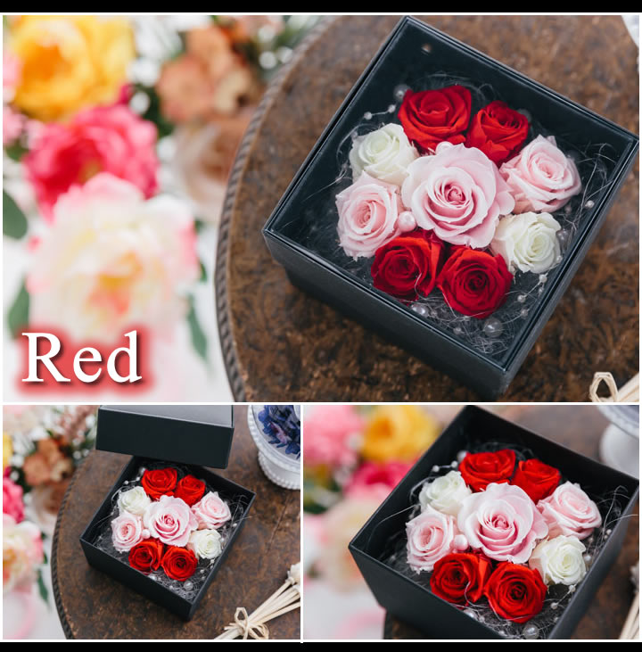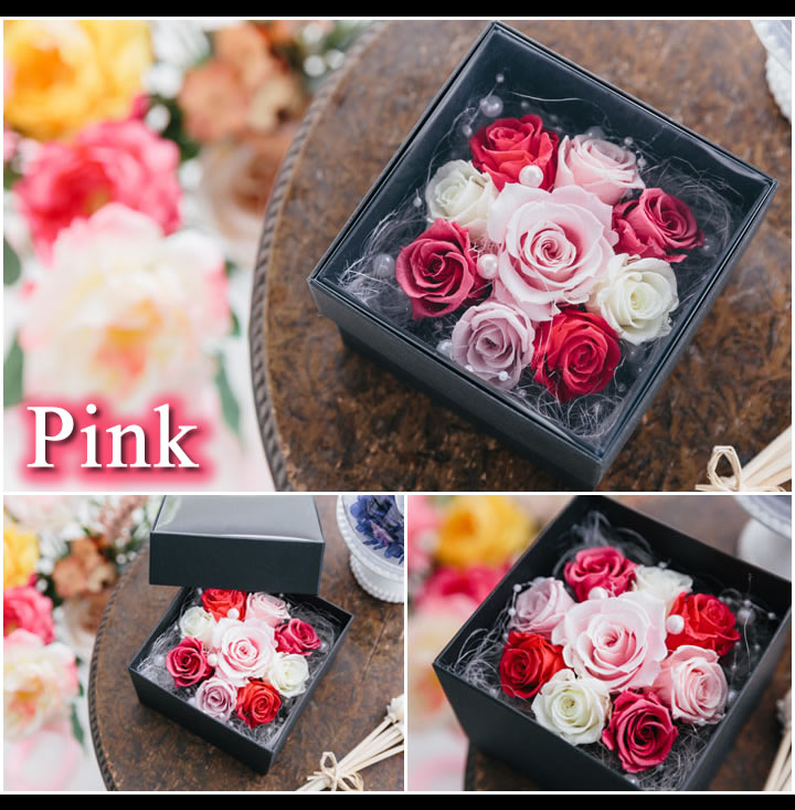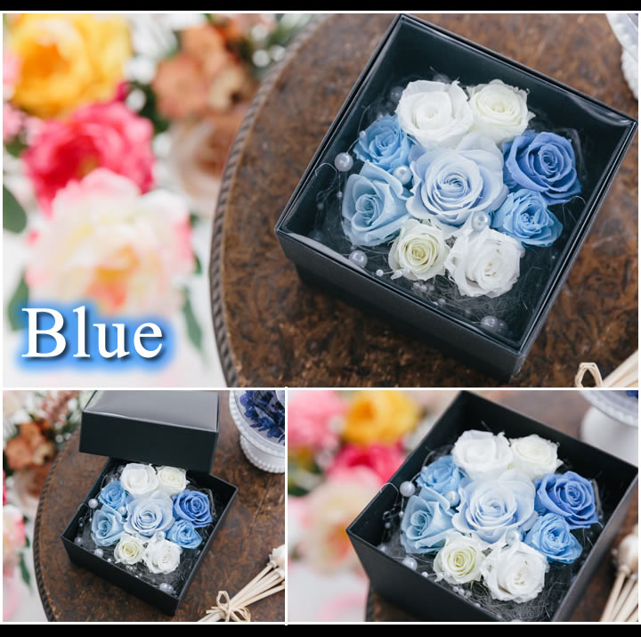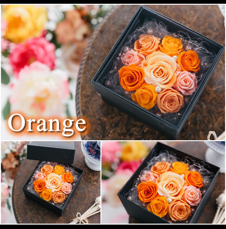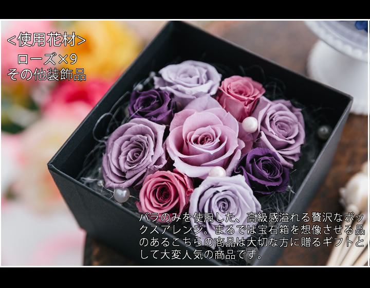 プリザーブドフラワー ボックスアレンジ ピンク ブルー オレンジ グリーン パープル レッド