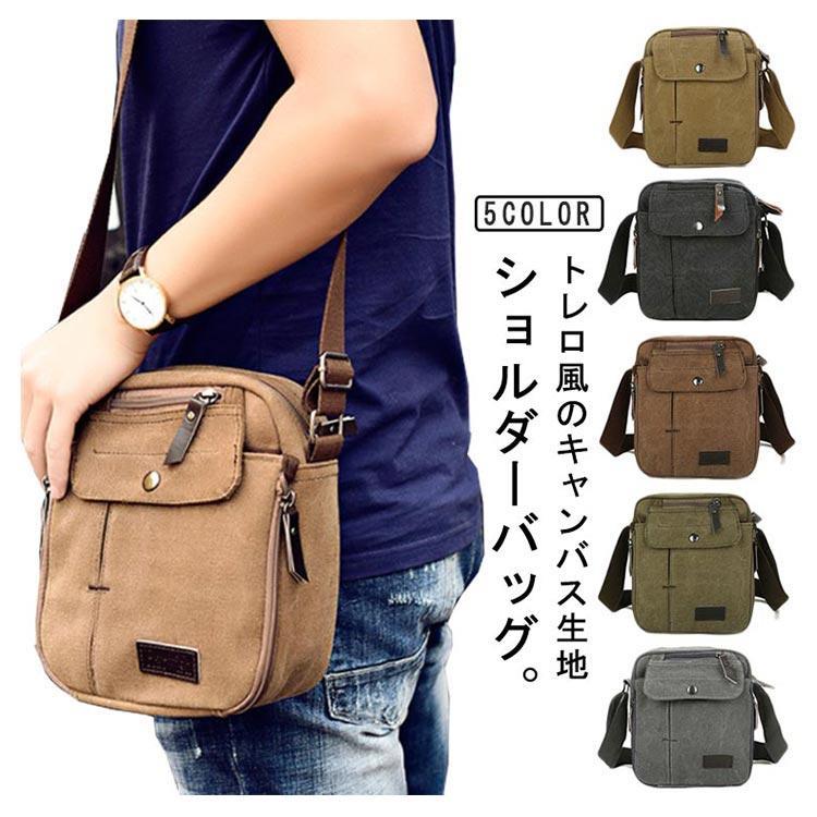 見た目以上の収納力 ショルダーバッグ メンズ トレロ キャンバス地 小さめ ミニショルダー 鞄 バッグ 斜めがけ