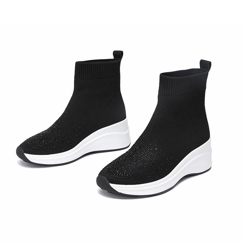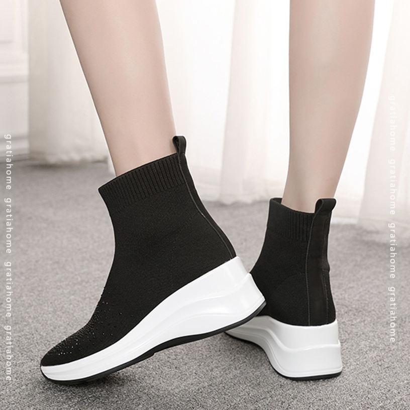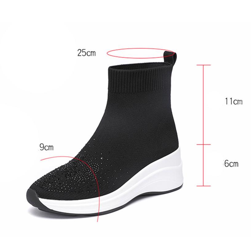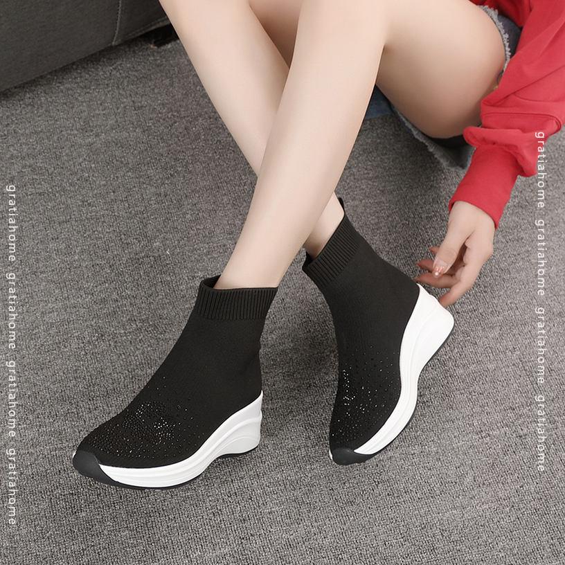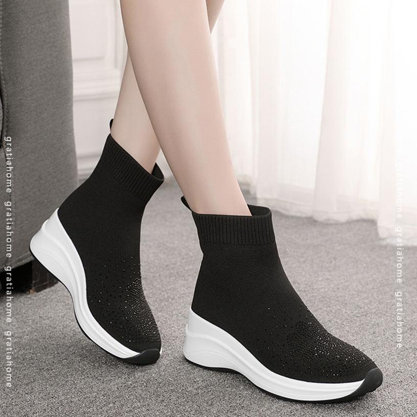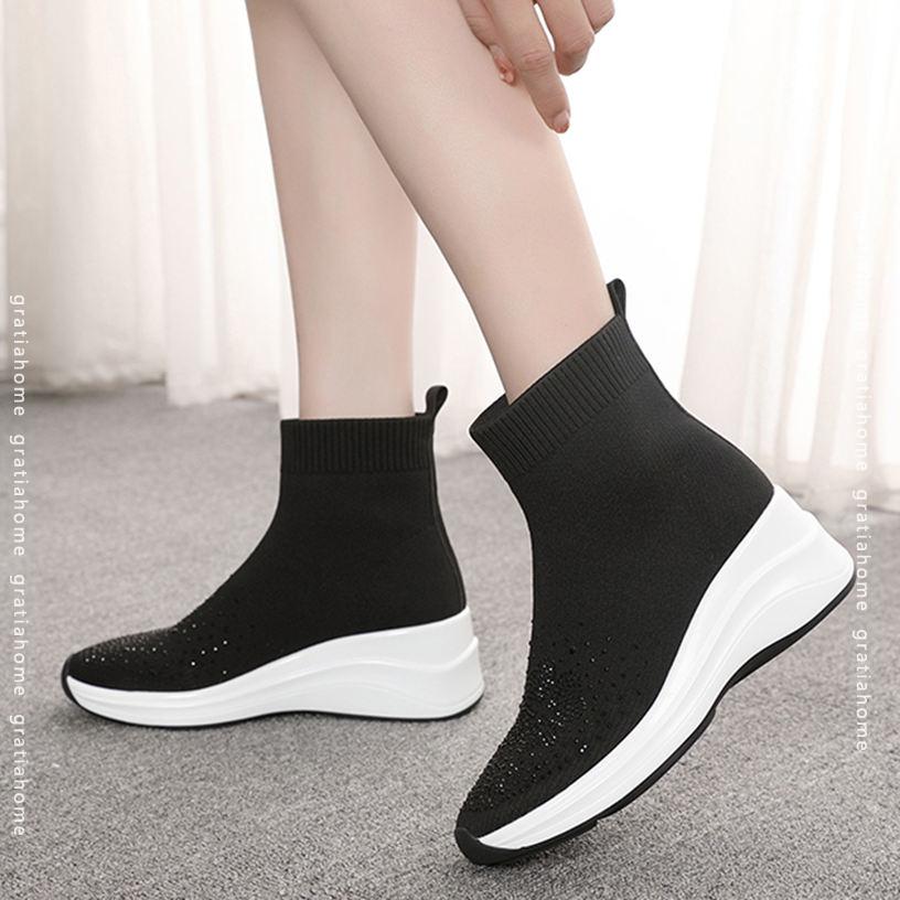 レディース ソックスブーツ ショート ロングブーツ ウエッジソール 大きいサイズ ラインストーン ニット チャンキーヒール 厚底靴 オシャレ 美脚 ファッション コンフォート 通学 滑り止め 安定感