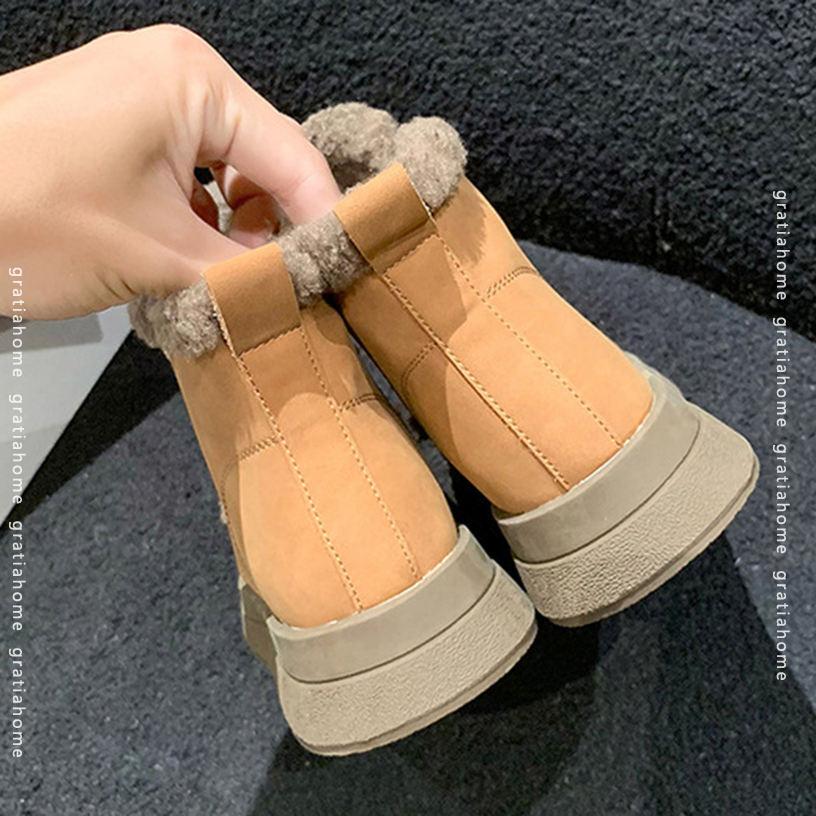 レディース ショートブーツ バックジッパー オシャレ かわいい 厚底 冬靴 防寒 スノーブーツ ウインター ファッション あったか カジュアル ふわふわ コンフォートシューズ 雪の日 雪面 冬用 雪用