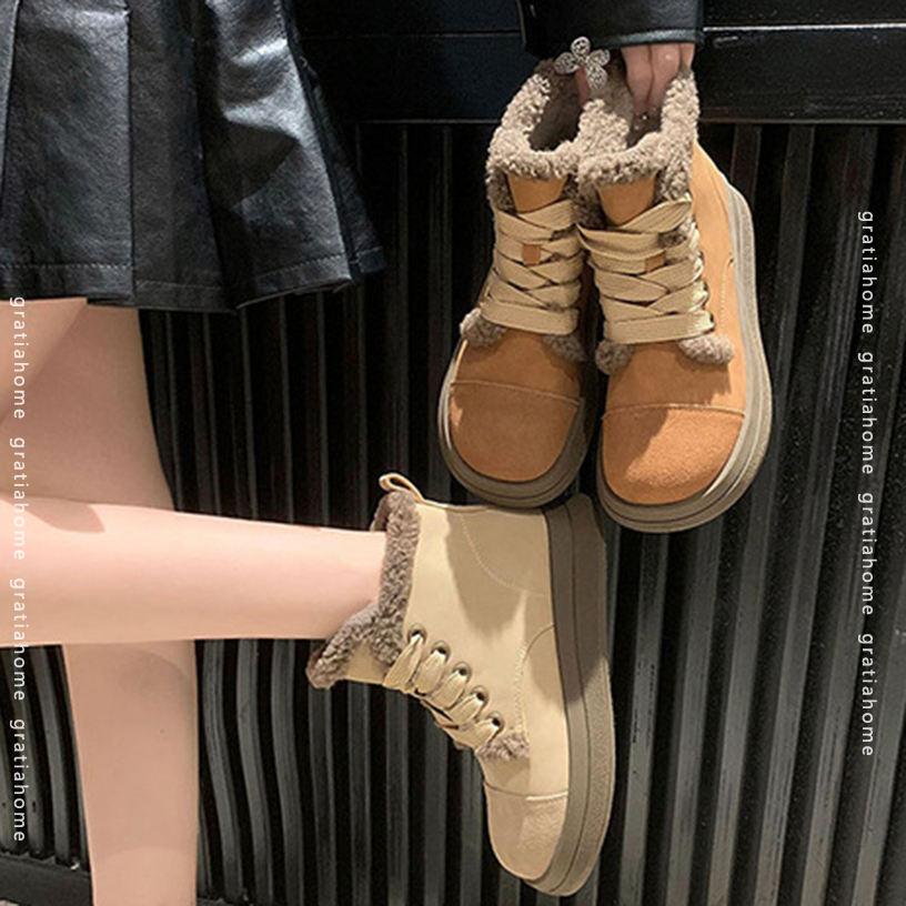 スノーブーツ ムートンブーツ レディース ショート 大きいサイズ 編み上げ スエード ピンク 黒 裏起毛 暖かい かわいい 紐 滑らない 雪 靴 マジックテープ 保温性 厚底 キャンプ ダウン