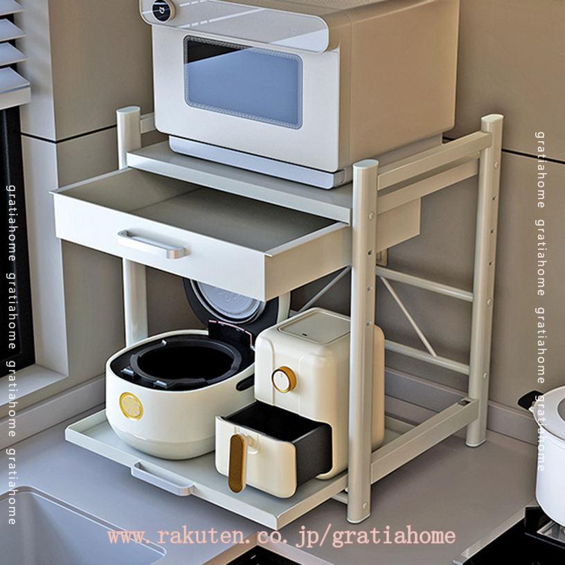 レンジ台 レンジ上ラック キッチン レンジ置き レンジラック トースターラック 幅40cm 多機能 オーブンレンジラック ラック 炊飯器置き台 高耐荷重 スライド式 引き出し付き オープ レンジボード