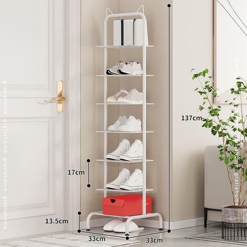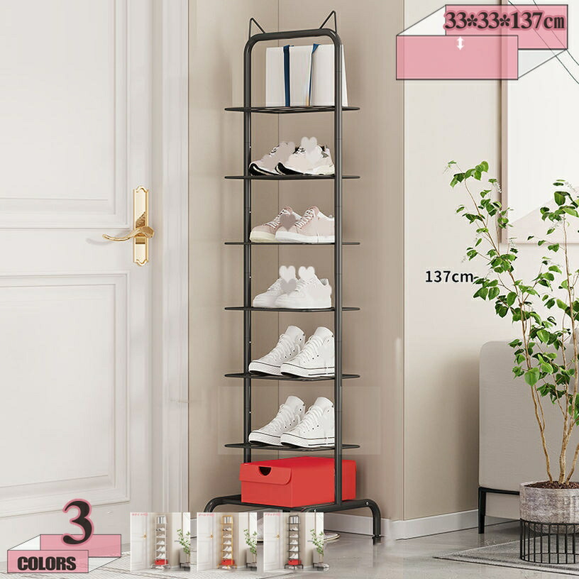 かわいい 簡易シューズラック スリム 靴収納 靴棚 省スペース 大容量 組み立て式 靴置き タワー コンパクト 鉄製 オープンシェルフ 滑り止め トレー 狭い 玄関 クローゼット アパート用 靴 廊下