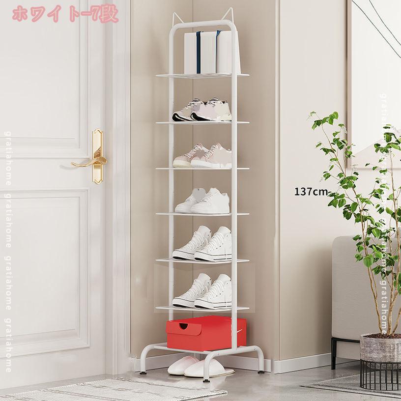 かわいい 簡易シューズラック スリム ゴールド-7段 ブラック-7段 ホワイト-7段