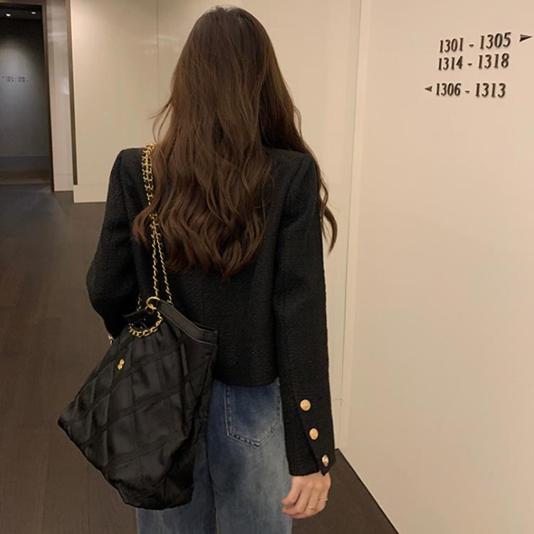 ツイードジャケット ノーカラ― チェッ レディースファッション 豊富 ブラック ホワイト グレー S M L XL 2XL
