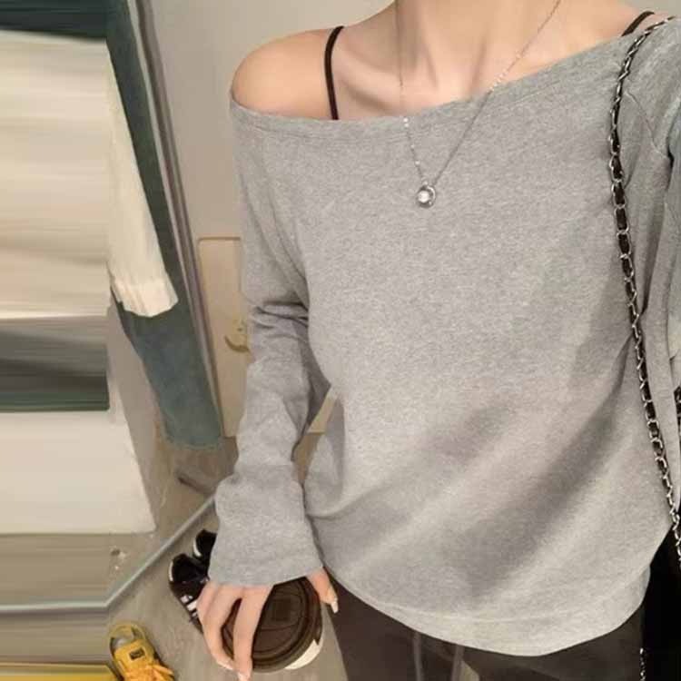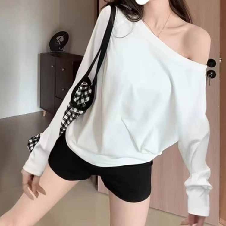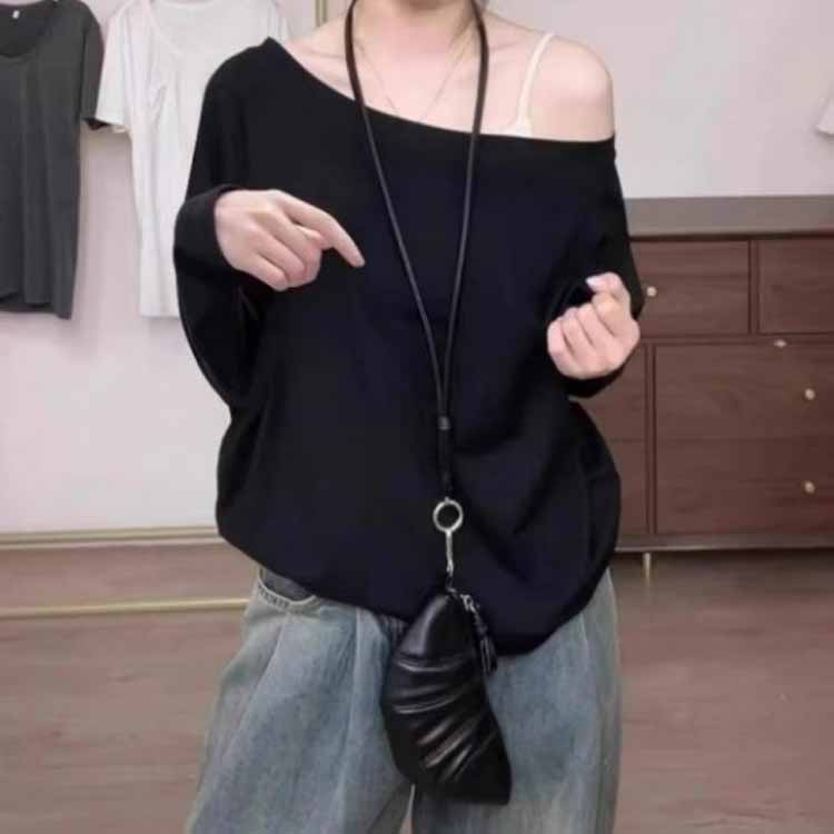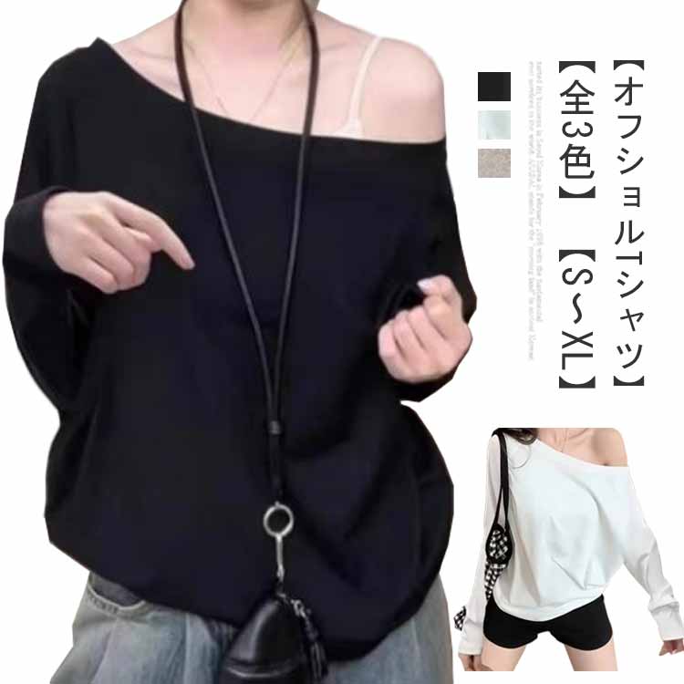 長袖 Tシャツ ゆったり オフショル トップス Tシャツ カットソー 人気 ブラック ホワイト グレー S M L XL