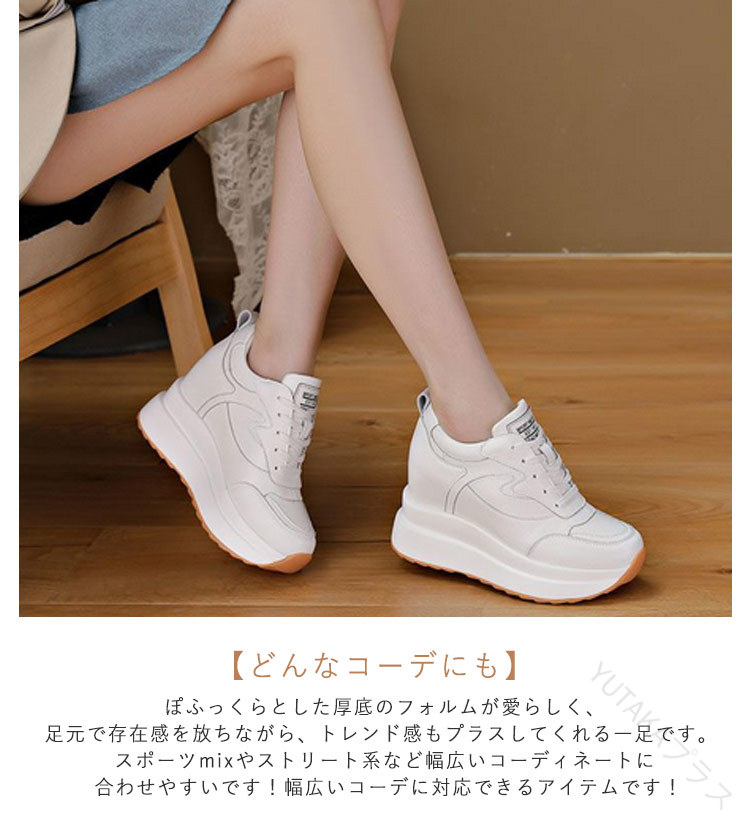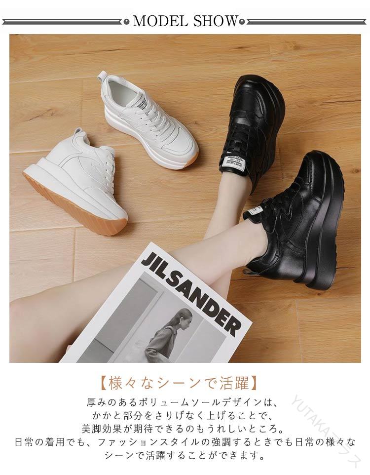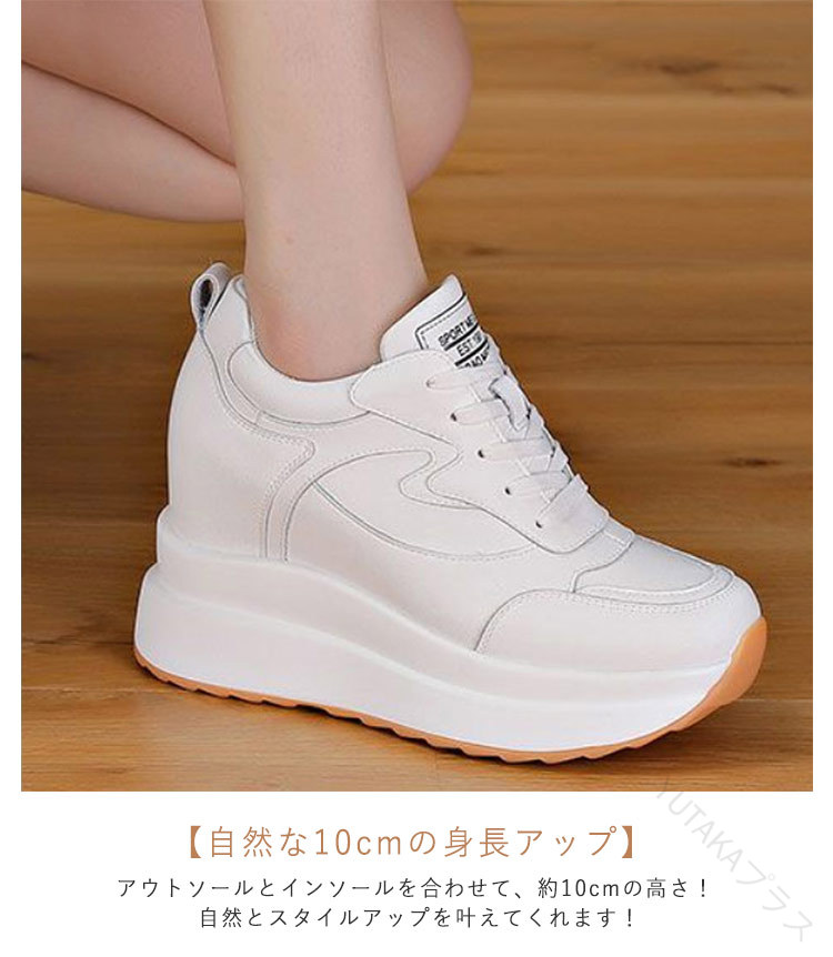 靴 ヒール 10cm スニーカー 厚底 レディース靴 スニーカー 通販 ブラック ホワイト 34(22cm) 35(22.5cm) 36(23cm) 37(23.5cm) 38(24cm) 39(24.5cm)