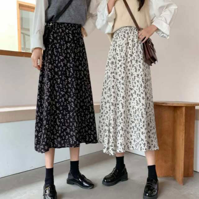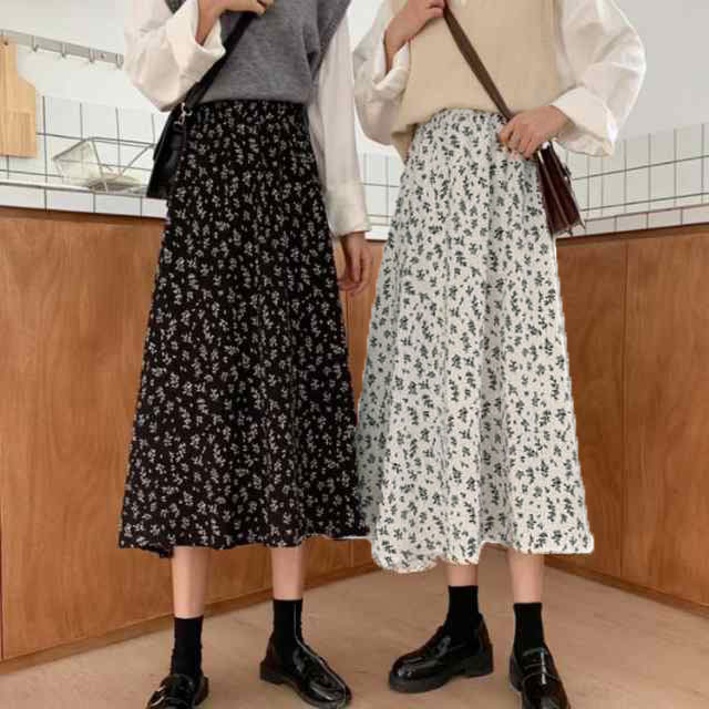 花柄ロングスカート フラワープリント レディースファッション 通販 ホワイト ブラック S M L XL 2XL 3XL