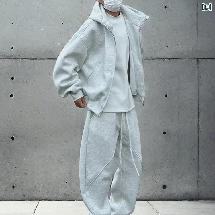 セットアップ メンズ 男性用 秋冬 厚 トップス スウェット トレーナー 早い者勝ち A:黒 B:灰 M L XL 2XL 3XL