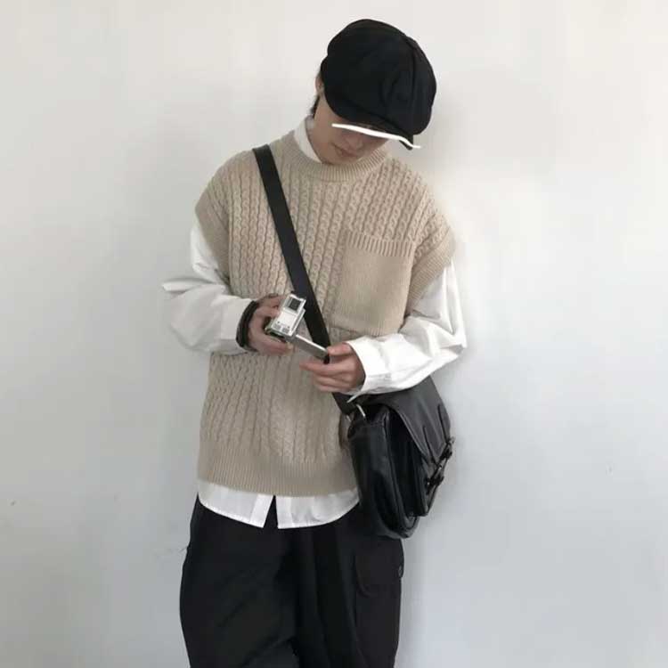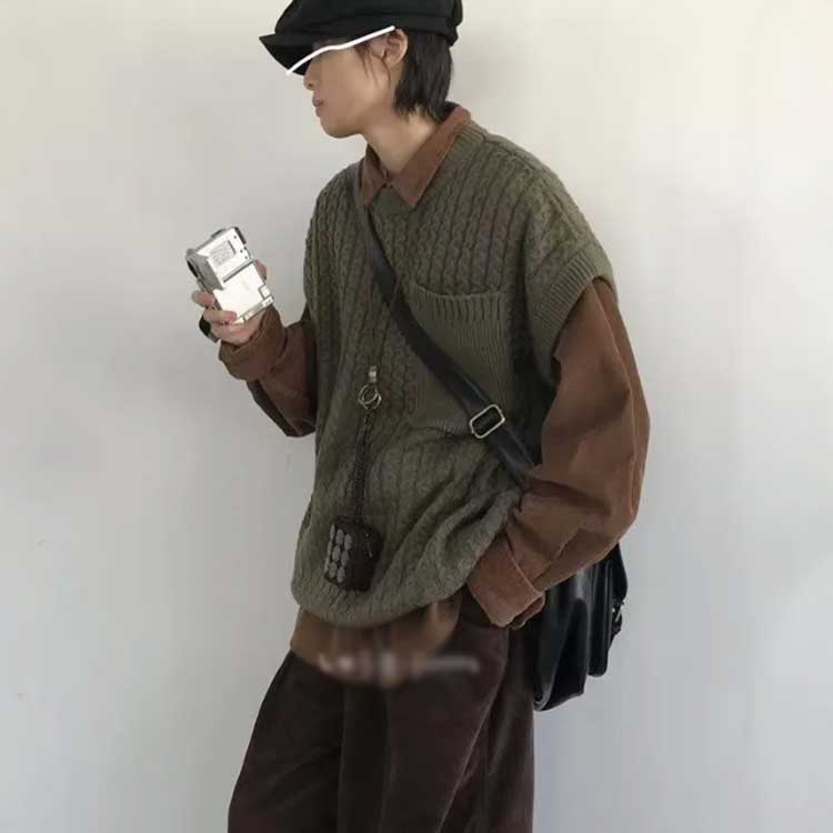 ニットベスト セーター 春 秋冬 ラウ メンズファッション 豊富な品揃え ベージュ グリーン M L XL 2XL