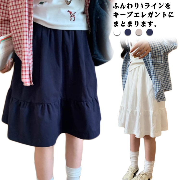 フレアスカート レディース ミディアム ボトムス スカート 人気 ホワイト ベージュ ピンク ネイビー S M L XL