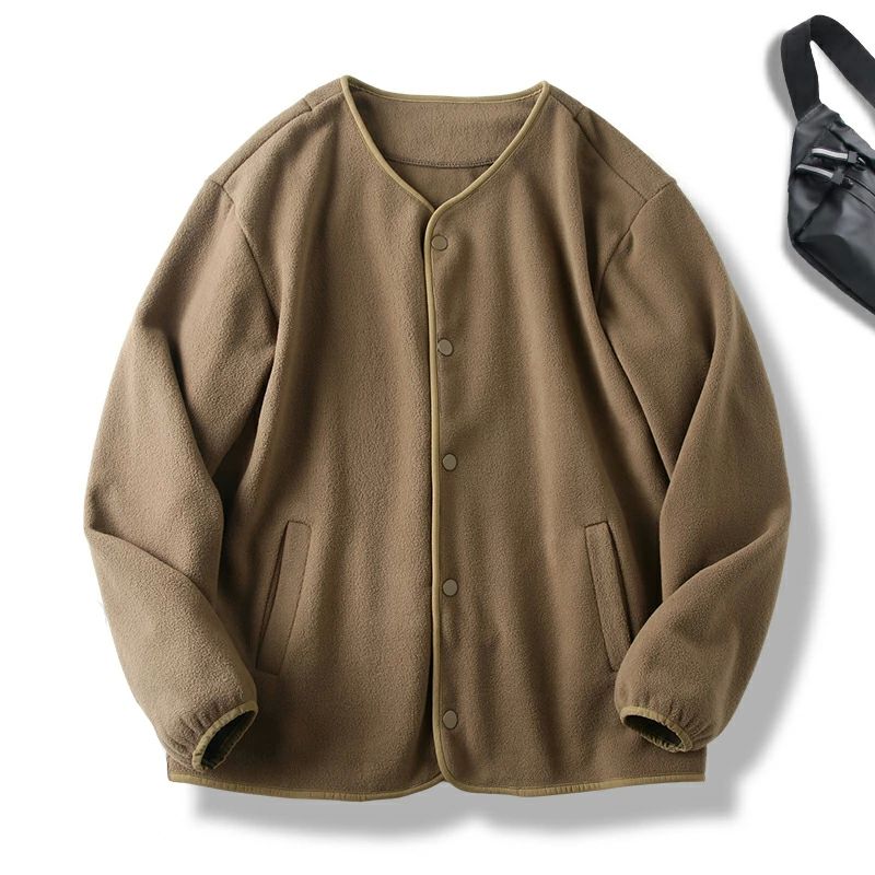 メンズ ノーカラージャケット レディース 暖かい フリースジャケット 無地 秋冬 ボアブルゾン もこもこ 男女兼