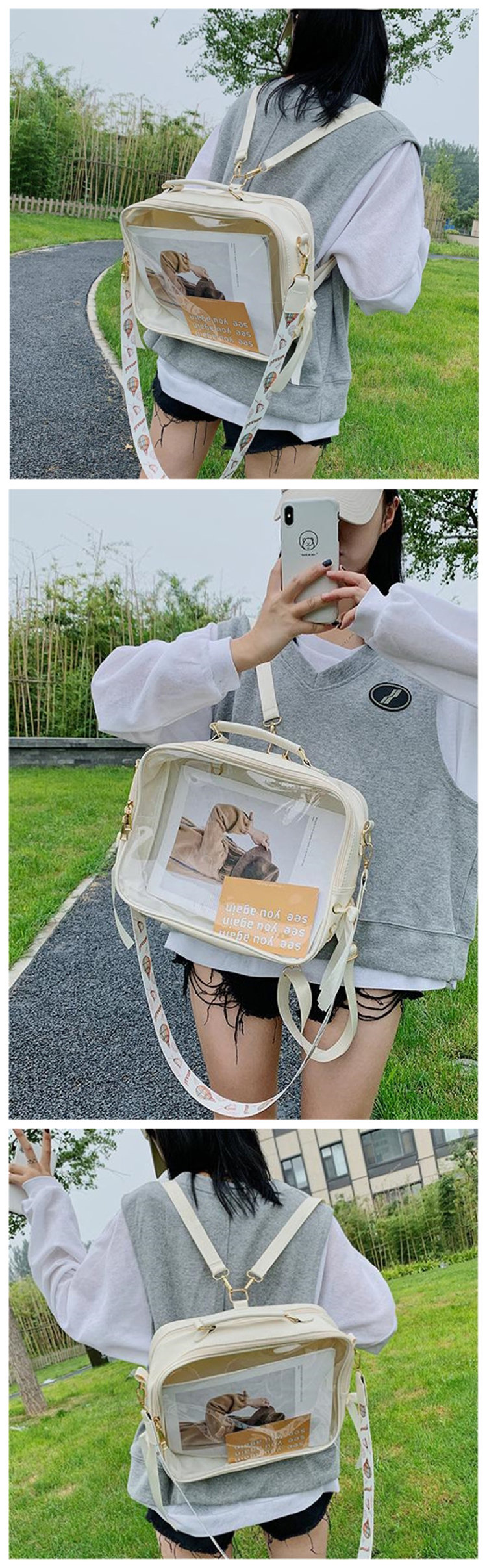 ト トート ヲタバ かばん カバン 鞄 ガールズ レディース ビニールバッグ リュック ハンドバッグ 痛バ 3WAY PU ショルダーバッグ