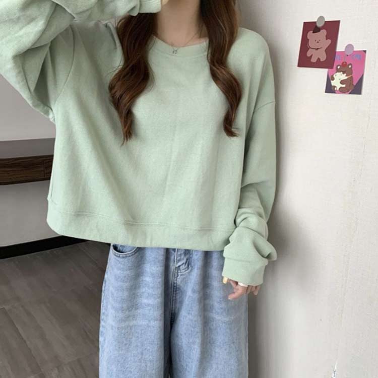 秋 ショート丈トレーナー 春 スウェッ トップス スウェット トレーナー 人気 ブルー グリーン イエロー ホワイト ブラック M L XL 2XL