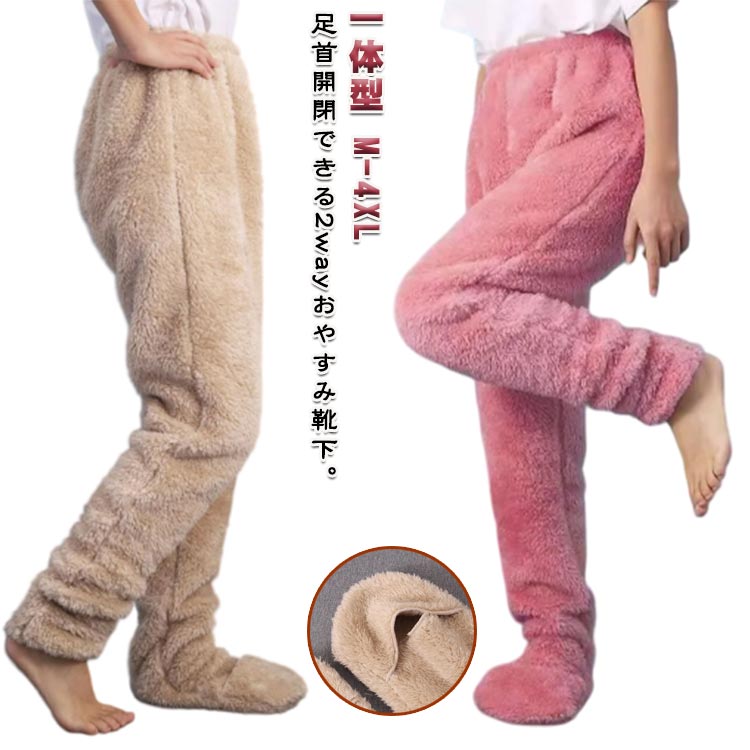 ボアパンツ 靴下付き 暖かい パジャマ インナー 下着 ナイトウエア 早い者勝ち ベージュ ブルー ピンク M L XL 2XL 3XL 4XL