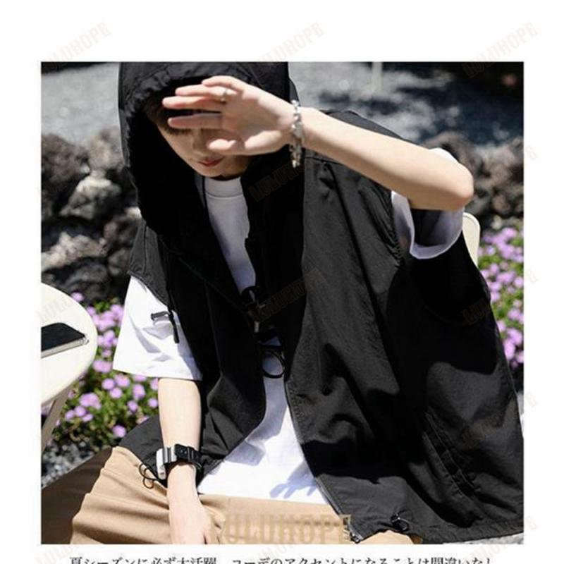 サマーベスト フード付 メンズ ベスト メンズファッション 超目玉商品 グレー ブラウン ブラック S M L XL 2XL