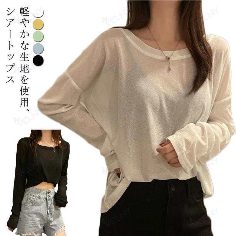 シースルー トップス 長袖 重ね着 き トップス Tシャツ カットソー 通販 ブルー ホワイト ブラック グリーン イエロー M(40-50kg) L(50-57.5kg) XL(57.5-65kg) 2XL(65-75kg) 3XL(75-85kg) 4XL(85-100kg)