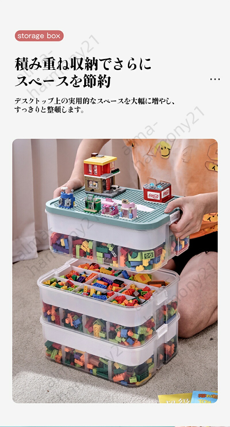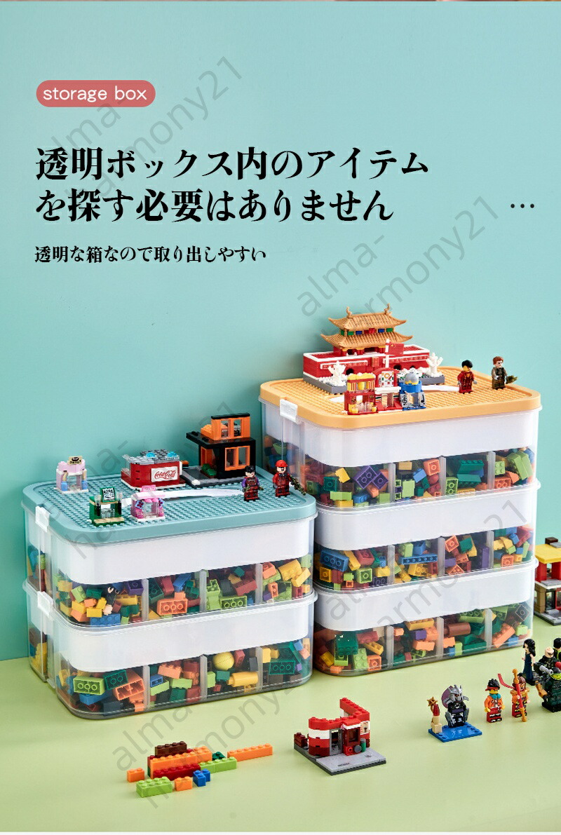レゴブロック収納ボックス 大容量 おも 1段 2段 3段 ブルー イエロー
