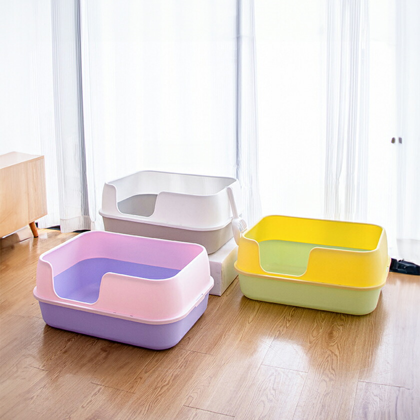 猫トイレ 大きめ 飛び散らない トイレ ペット ペットグッズ 早い者勝ち ホワイト&グレー イエロー&グリーン ピンク&パープル