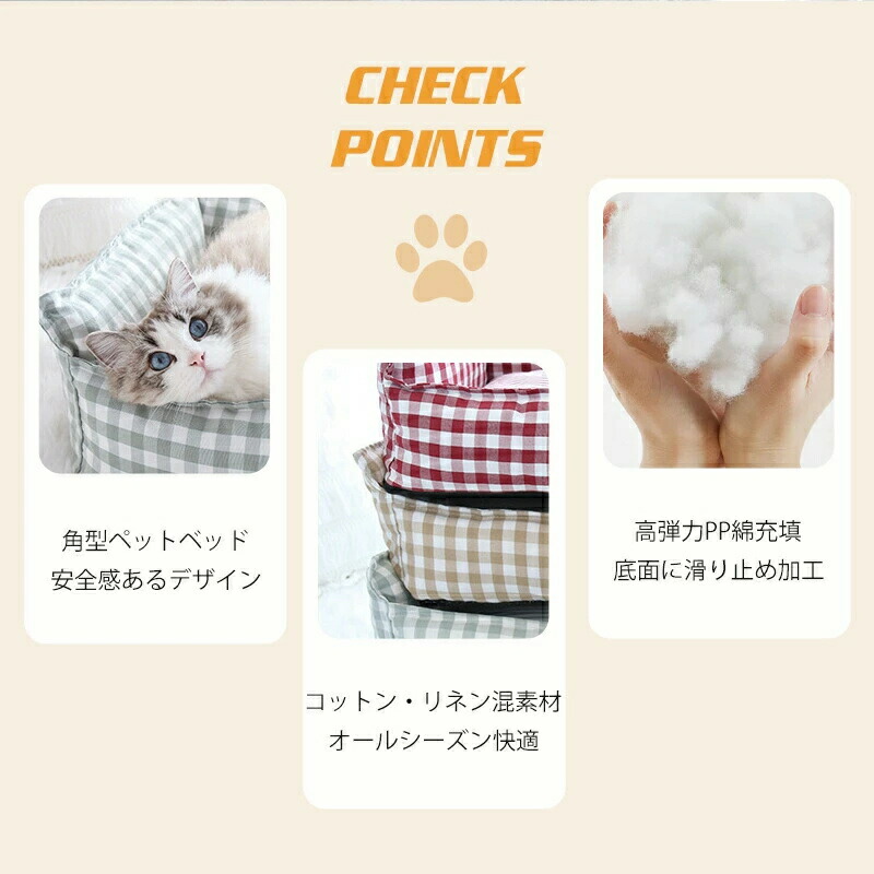 ペットベッド チェック柄 小型犬 大き 犬用品 ベッド マット 寝具 ベッド カドラー 早い者勝ち ベージュ グリーン レッド S(50×40cm) M(60×50cm) L(70×60cm)